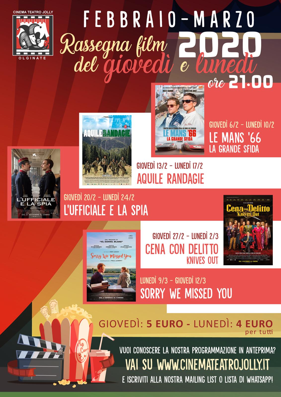 Giovedì 6 febbraio prenderà il via la prima parte della rassegna di film di qualità organizzata dal Cinema Jolly di Olginate. La grande novità di quest’anno è il raddoppio delle proiezioni, previste infatti non più solo al giovedì sera ma anche al lunedì sera successivo. Una piacevole novità che nel 2020 si affianca all’introduzione dei rialzini per i bambini più piccoli.