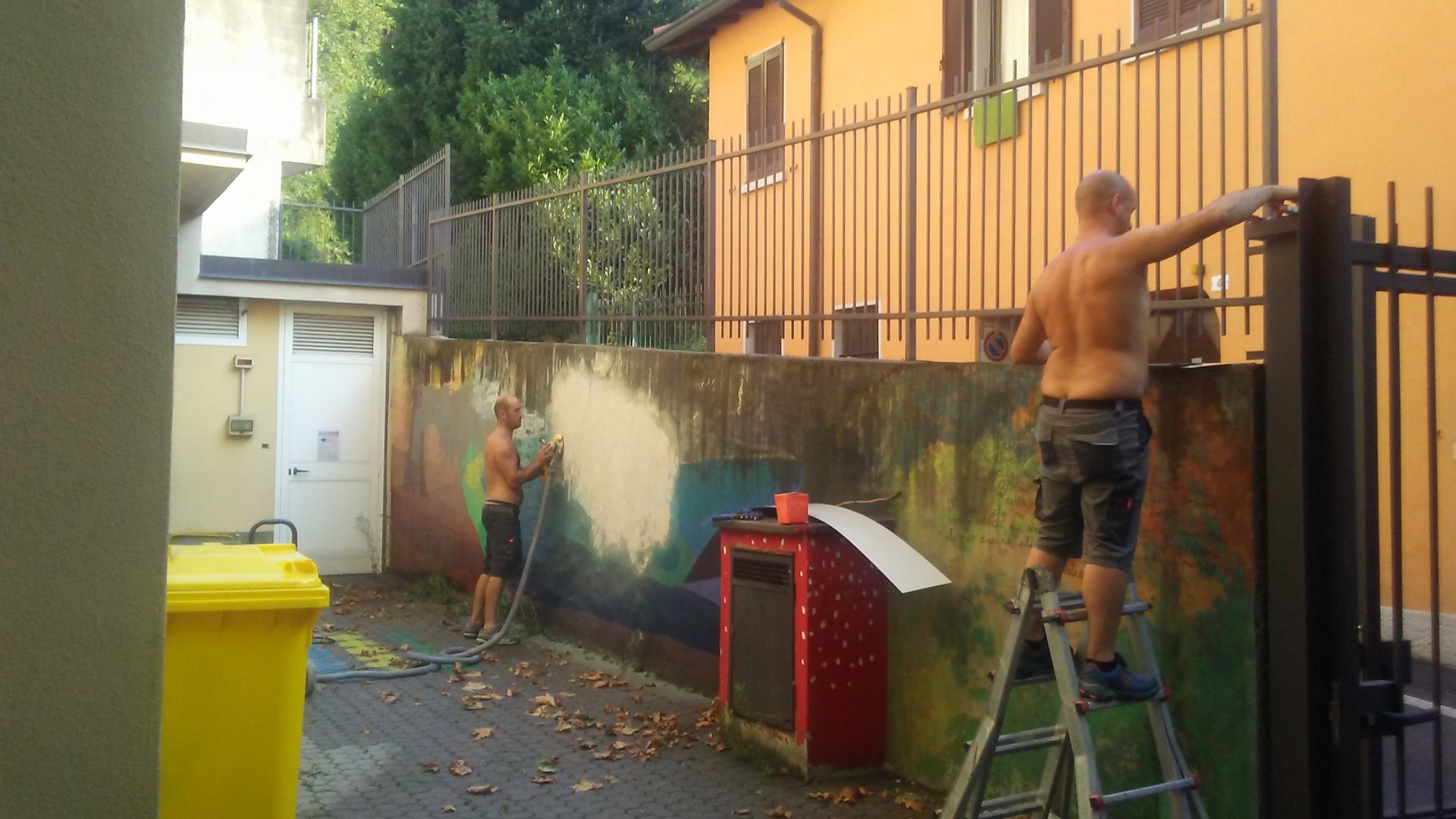 Lavori in corso alla “F. Filzi” di Bonacina: i genitori si sono messi all’opera a partire da oggi, lunedì 5 agosto, per pulire i muri del cortile che verranno poi ri-pitturati, da settembre, dagli stessi alunni. “La parete ospiterà una mini-palestra di arrampicata in orizzontale – spiega Antonella Frizzarin, referente di plesso – Questa è l’intenzione dei docenti che hanno aderito al progetto Smuovi la Scuola”.