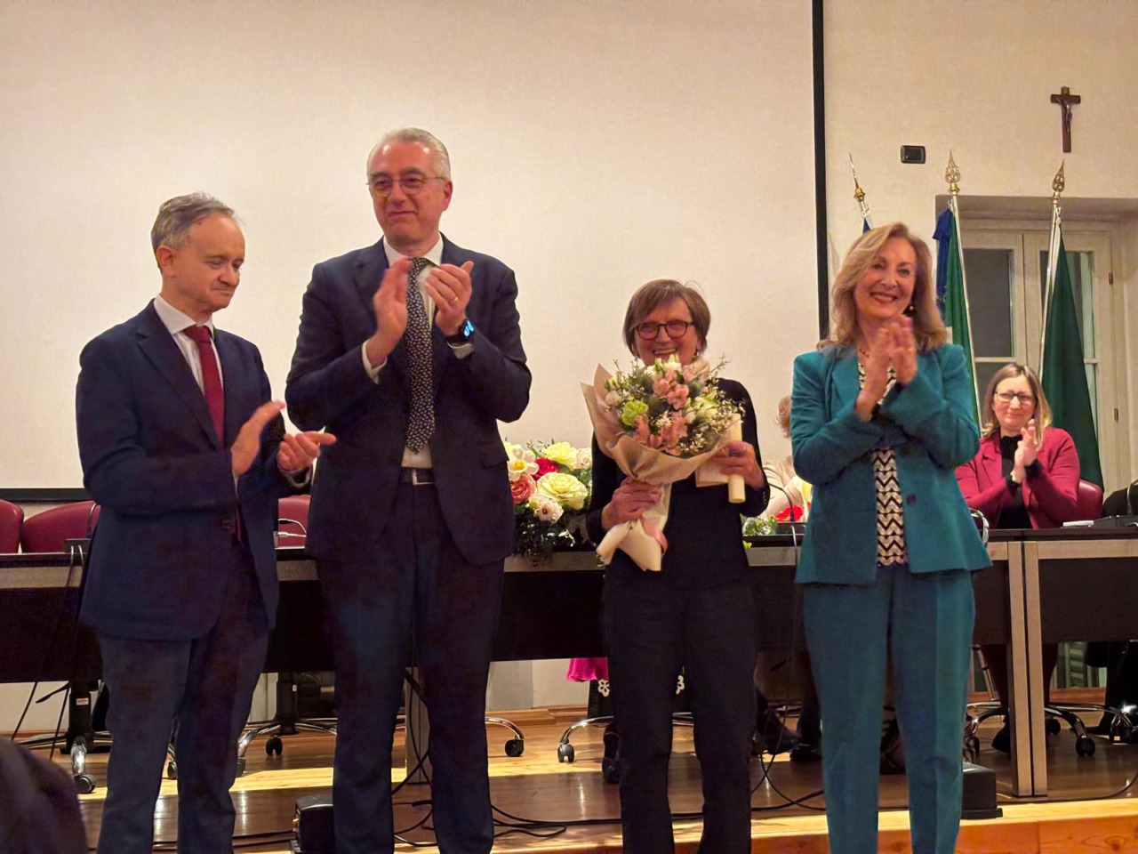 Infine, ultima ma non certo per importanza, la terza benemerenza è stata consegnata all’associazione “Il tempo di dare”, che nel 2025 ha festeggiato il traguardo dei 40 anni dalla fondazione. Impegnata a supporto degli ospiti della Rsa Opera Pia Magistris di Valmadrera, oggi conta 16 volontarie. E’ stata fondata nell’85 da Rosa Cagliani e Paola Crimella, come “Gruppo volontari assistenza anziani”. Con Dolores Tentori, prematuramente scomparsa nel 2004, è diventata “Il tempo di dare”. A lei è succeduta nel 2008 come presidente Rosalba Corti, mentre oggi è guidata da Carla Maffezzini. L’associazione supporta gli ospiti della Rsa attraverso attività quotidiane, come attività ricreative e ludiche in collaborazione con gli animatori professionisti e momenti di ascolto o di semplice presenza, per creare nella struttura un ambiente sereno e familiare. Il sodalizio ha saputo affrontare anche periodi difficili come quello del Covid, reinventandosi in base alle esigenze di quel momento, mantenendo sempre una presenza costante. “Ci ricorda che a ciascuno di noi è affidato il compito di vegliare sulla solitudine dell’altro”, ha sottolineato la vice Brioni.