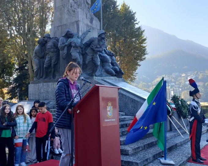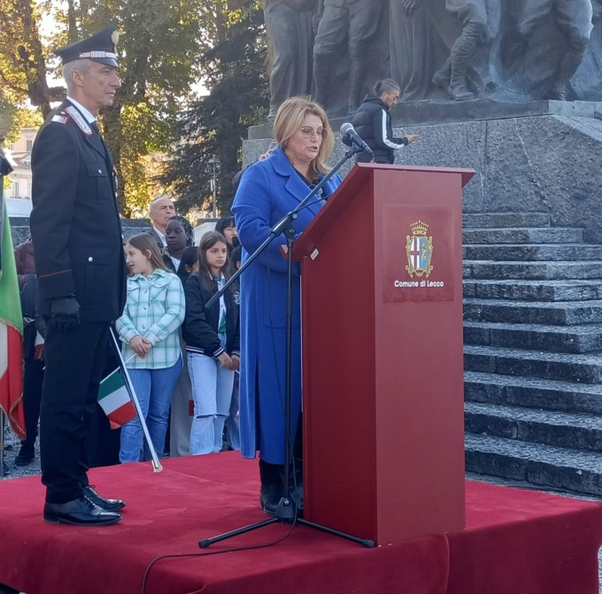 “La Giornata dell’Unità Nazionale e delle Forze Armate è  un’occasione in cui ricordiamo non solo i sacrifici di chi ha difeso la nostra libertà, ma anche l’importanza della nostra identità nazionale, costruita attraverso la storia. Lecco, come molte altre città italiane, ha un passato ricco di uomini e donne che hanno contribuito, con il loro sacrificio, alla costruzione dell’Unità nazionale. Non dimentichiamo le pagine di storia che ci uniscono, le battaglie combattute e le vite spese per garantire un futuro migliore per le generazioni future. Un futuro di democrazia e libertà – ha sottolineati la vicesindaco Piazza –  Proprio 110 anni fa, nel luglio del 1914, scoppiava quella “Grande Guerra” che avrebbe portato a oltre 16 milioni di morti e oltre 20 tra mutilati e feriti. Una ferita enorme che, davanti agli orrori della contemporaneità, non può che interrogarci sulle atrocità delle guerre, sui massacri dei civili cui quotidianamente assistiamo, sulla totale mancanza di rispetto del diritto internazionale e di tutte quelle forme di protezione umanitaria create.Per questo, come ogni anno, ci troviamo davanti al Monumento ai Caduti della nostra città, un simbolo che ritrae una donna, la Patria, con le ali ripiegate e il viso afflitto dal dolore: questa stele in granito non è un muto simulacro di quanti hanno perso la vita in battaglia ma, al contrario, un ammonimento perenne di cosa comportino le guerre e di quali costi abbiano avuto – e hanno tutt’oggi – in termini umani, sociali, economici.”