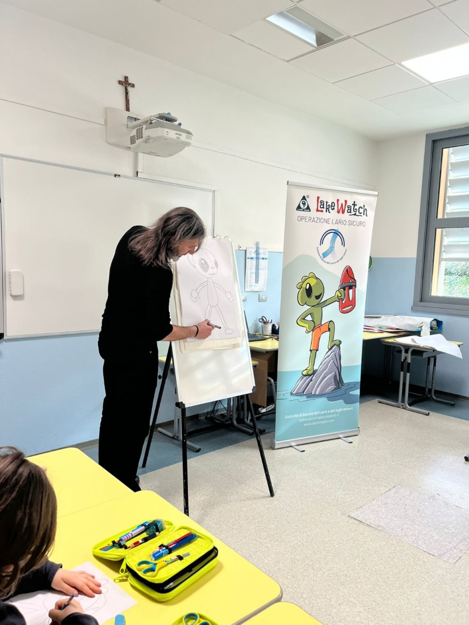 L’iniziativa, tenutasi venerdì 20 febbraio 2026, si è inserita nella Giornata nazionale della Cura della salute delle persone e del pianeta, all’interno del progetto d’Istituto «Scuole di pace per la pace”, offrendo agli alunni, dalla classe prima alla quinta, l’opportunità di esplorare comportamenti corretti legati all’ambiente e alla vita sul lago. Il cuore del progetto è il libro illustrato Il viaggio di Emmsì, di Fabrizio Chierichetti e Luigi Sabadini, pubblicato da La Strada per Babilonia. Una guida narrativa alla scoperta dell’acqua e del suo valore, che attraverso il personaggio di Emmsì accompagna i bambini in un percorso di consapevolezza e responsabilità. I bambini hanno avuto la possibilità, giocando ad un memory dedicato al riciclo, di imparare a riconoscere materiali e contenitori, rafforzando la consapevolezza sui piccoli gesti quotidiani che possono fare la differenza per il territorio. Grande anche la partecipazione per «LakeWatch», un gioco educativo realizzato in collaborazione con l’Autorità di Bacino del Lario e dei Laghi minori. Il game ha guidato gli alunni nella comprensione delle regole fondamentali per una balneazione sicura e una corretta convivenza con l’ambiente lacustre.