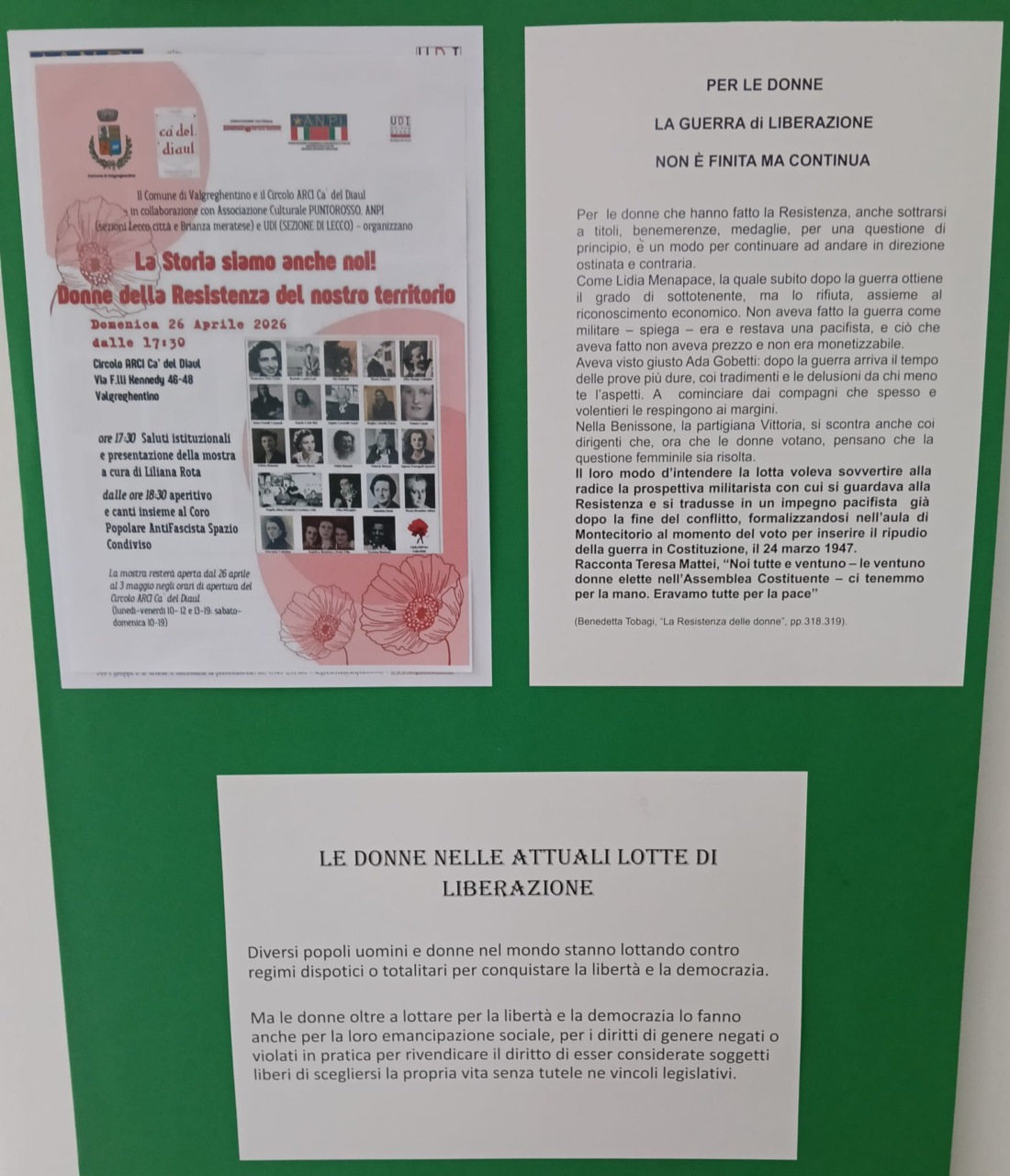 Una mostra che non è solo esposizione di fotografie, ma un incontro con la memoria viva di chi ha reso possibile la libertà. “La storia siamo anche noi! Donne della Resistenza nel nostro territorio”: così si intitola l’esposizione inaugurata nel pomeriggio di oggi, domenica 26 aprile 2026 al circolo Arci Ca’ del Diaul a Valgreghentino. Una iniziativa che riporta al centro volti e storie di donne che, con coraggio silenzioso e determinazione profonda, hanno attraversato la Resistenza lasciando un segno indelebile nella nascita dell’Italia democratica.