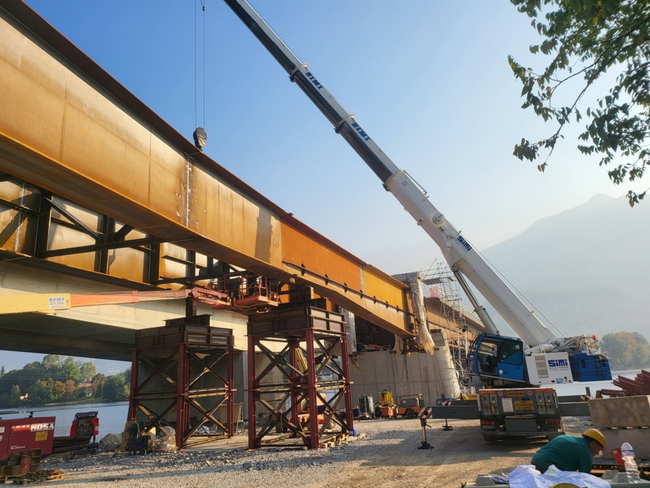 Per ampliare il tracciato da Milano−Pescate verso Lecco−Bione, Anas sta realizzando tre nuove strutture principali. Il progetto comprende un primo viadotto, che costituisce la rampa di ingresso lato Pescate, organizzato su quattro campate, il nuovo Ponte sull’Adda, costruito adiacente all’attuale ponte Manzoni e anch’esso strutturato su quattro campate, e infine un ultimo viadotto, che funge da rampa di uscita in direzione Bione, sviluppandosi in adiacenza alla rampa esistente. L’investimento complessivo della nuova variante ammonta a 35.629.100 euro.