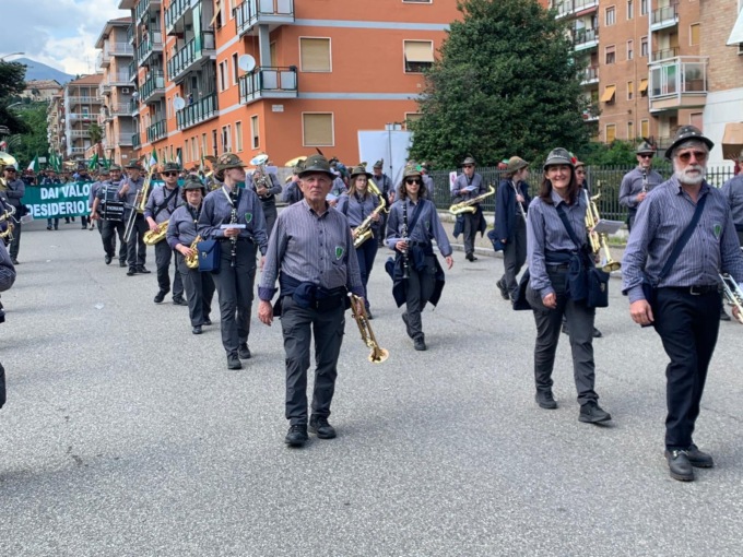 La sfilata della Sezione Alto Lario è stata impreziosita dalla Fanfara Alpina Alto Lario Cav. Mariano Stella accompagnando i passi di marcia degli Alpini con celebri pezzi musicali.