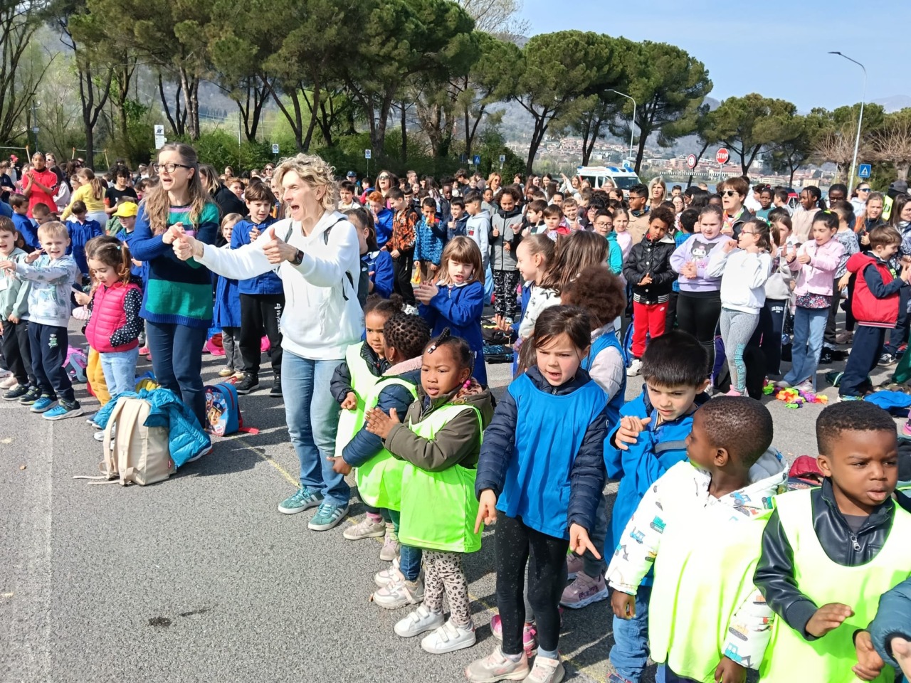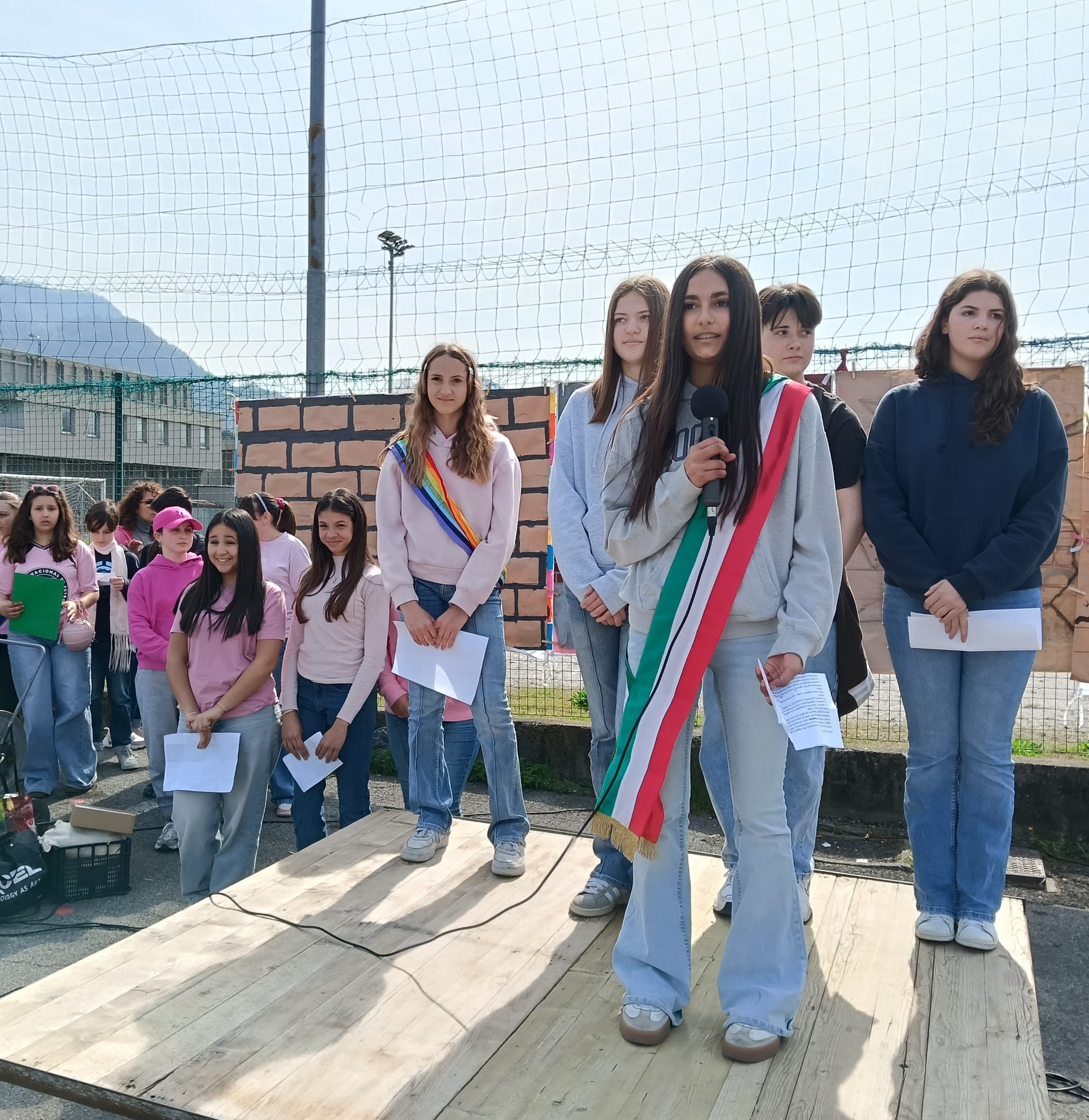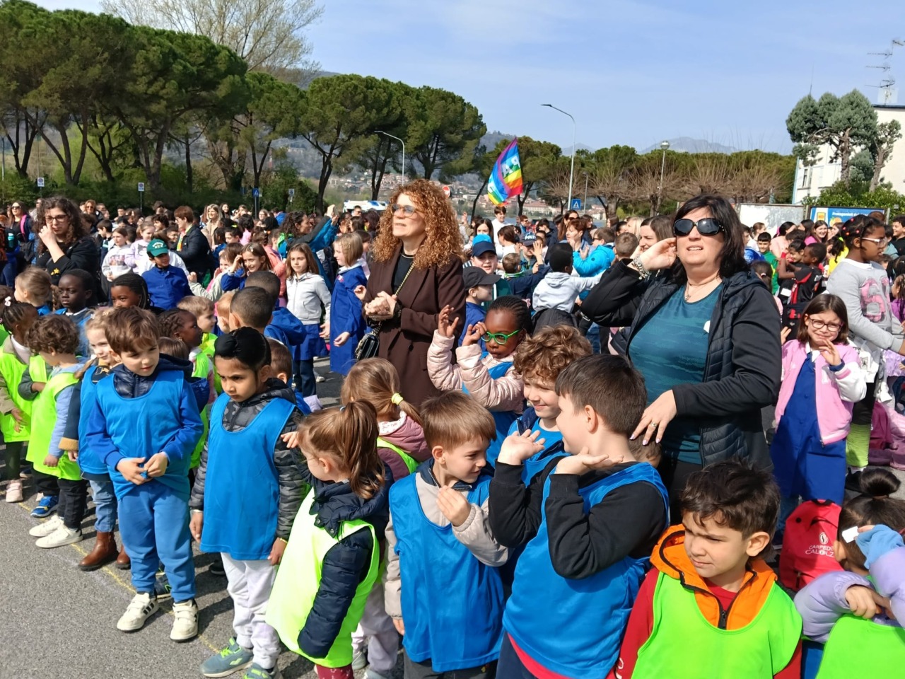 La manifestazione è stata scandita da momenti di festa e riflessione: canti, coreografie e interventi degli studenti più grandi hanno dato ritmo alla mattinata, trasformando la marcia in un momento di condivisione autentica.