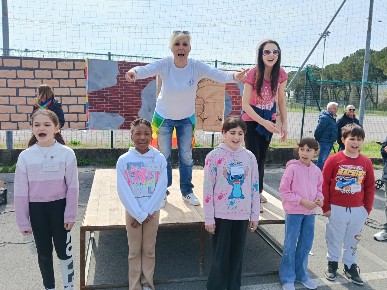 Tra i momenti più significativi, la costruzione simbolica di un grande muro della pace, composto da mattoncini colorati realizzati da ogni bambino. Su ciascuno, un messaggio, un pensiero o un disegno dedicato ai valori della fratellanza e della non violenza. Un muro non per dividere, ma per unire, con una finestra aperta verso l’esterno come simbolo di dialogo e speranza.