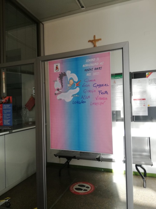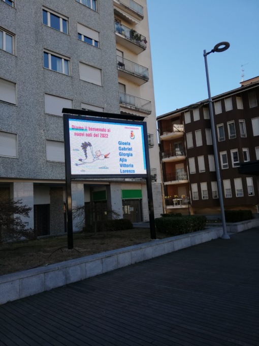 L’immagine è poi ben visibile anche sul maxi-schermo posizionato in piazza Vittorio Veneto e replicata su di un manifesto, posto all’ingresso principale del Comune, dove i genitori che si recheranno in municipio per registrare una nuova nascita potranno scrivere personalmente il nome del proprio figlio/a.
