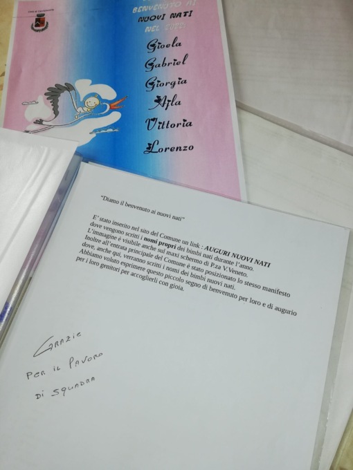 “Si tratta di un piccolo lavoro – spiega l’assessore ai Servizi Sociali – che però ha comportato un grande lavoro di squadra per la predisposizione del link, la scelta del disegno e la pubblicazione sia sul sito che sul maxischermo. Abbiamo voluto così esprimere un piccolo segno di benvenuto per loro e di augurio per i loro genitori per accoglierli con gioia”.