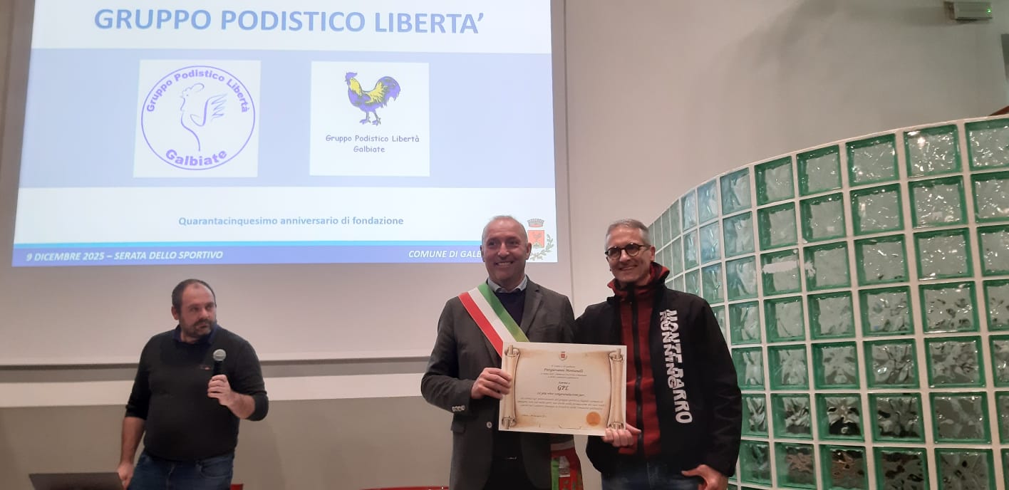 Nel momento clou della serata, l’assessore allo Sport Mario Di Giugno ha aggiornato i presenti su alcune novità importanti che hanno caratterizzato il 2025 in tema di sport: la fusione delle società calcistiche ASD Galbiate 1974 e GS Sala al Barro per formare una nuova società, la Asd Sala Galbiate 1974; il primo Trofeo Sala Galbiate di pattinaggio che a settembre ha richiamato oltre 500 atleti grazie alla Società Sportiva del Sala Galbiate 1974; e infine l’annuncio che a febbraio inizieranno i lavori per lo Skate Park al centro sportivo, grazie al gruppo di giovani Vibes, che tuttavia necessitano ancora della generosità dei galbiatesi per raggiungere la cifra necessaria a completare il progetto. Poi, sono stati chiamati a ritirare una pergamena i rappresentanti della Bocciofila Libertà per il 55esimo anno di fondazione, e del Gruppo Podistico Libertà che ha celebrato i 45 anni di attività.