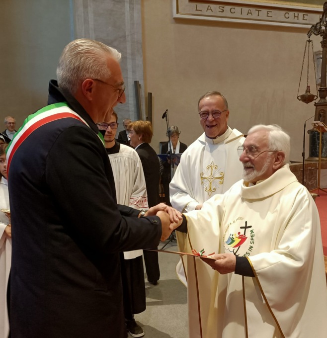 Missionario della congregazione dei Passionisti, padre Celestino Butti ha dedicato la vita agli ultimi e oggi la comunità si è stretta a lui nella solenne celebrazione che ha officiato con il parroco don Isidoro Crepaldi, il vicario parrocchiale don Fabio Saccon e don Egidio Casalone. Sull’altare anche padre Giuseppe Butti, fratello del festeggiato (fa parte della congregazione dei Clarettiani e il prossimo anno sarò proprio lui a celebrare i 50 anni di vita consacrata) e padre Ivan Straface del Pime. Ad animare la celebrazione è stata la corale parrocchiale di Sant’Antonio Abate diretta dalla maestra Giovanna Erroi accompagnata all’organo dal maestro Mauro Vassena.