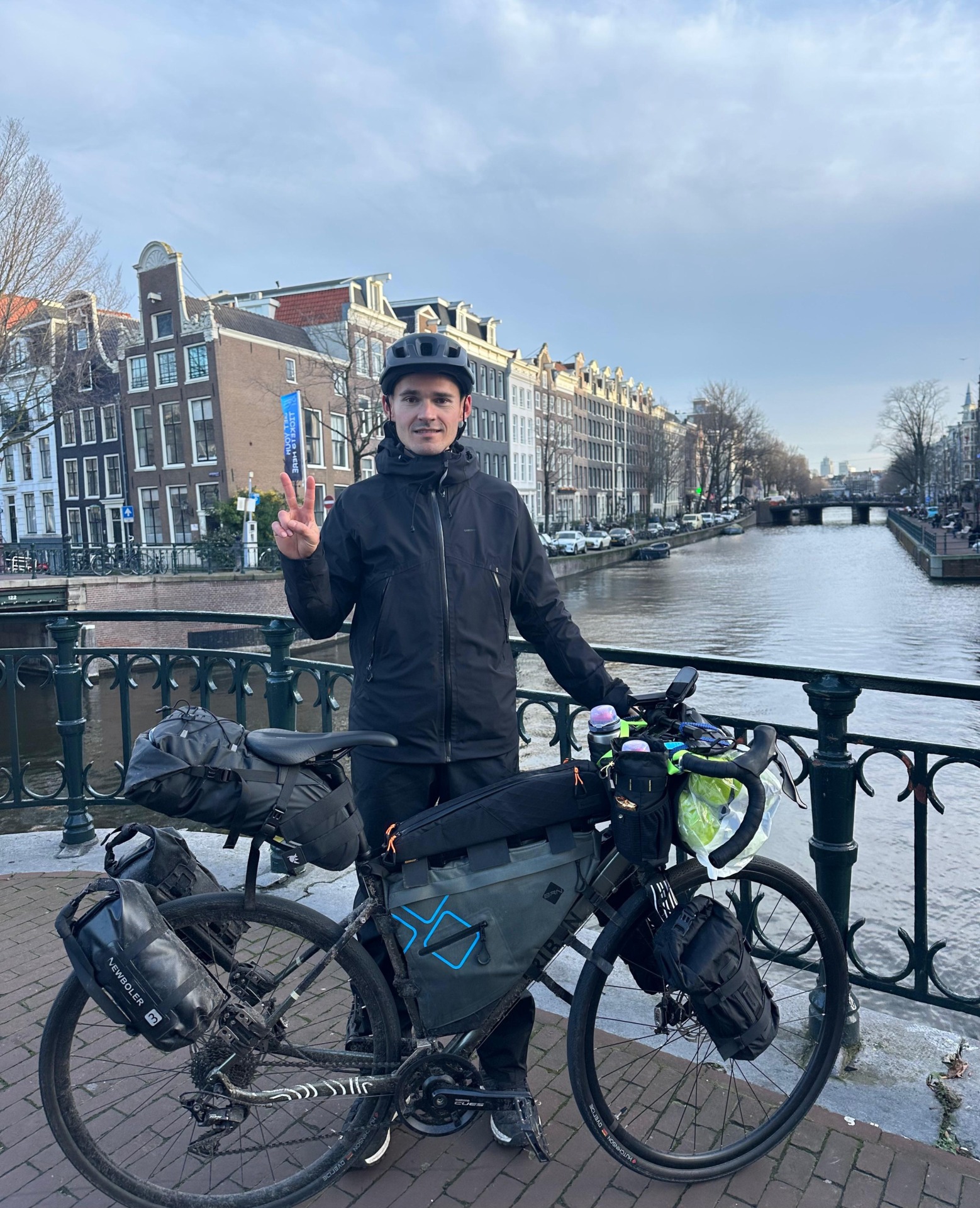 Quando ti presenti in un paesino in sella ad una bici con tanti chilometri alle spalle, la gente ti guarda con occhi più accoglienti. L’unico vero limite del viaggio è stato partire nel mese con le giornate più corte dell’anno, con poche ore di luce a disposizione per pedalare. Allo stesso tempo, però, dicembre ha regalato un fascino unico: un’atmosfera natalizia diffusa, decorazioni, luci e sorrisi inattesi lungo la strada. Ho avuto inoltre la fortuna di incontrare condizioni meteo favorevoli per quasi tutto il viaggio, fatta eccezione per l’ultimo giorno ad Amsterdam, accompagnato dalla pioggia”.