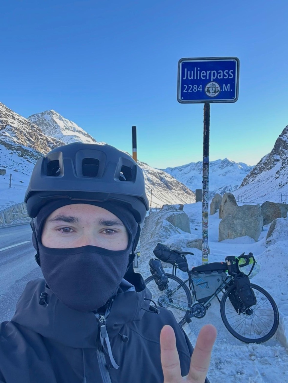 “A causa della chiusura invernale del Passo dello Spluga, ho attraversato il Passo del Maloja e il Julierpass, arrivando a 2.284 metri di quota, pedalando sulla neve, in pieno inverno. Il percorso mi ha portato ad attraversare Italia, Svizzera, Liechtenstein, Austria, Germania e Paesi Bassi, passando per piccoli paesi, campagne infinite, piste ciclabili curate e paesaggi di grande bellezza, tra animali lungo il percorso e atmosfere sempre diverse”.