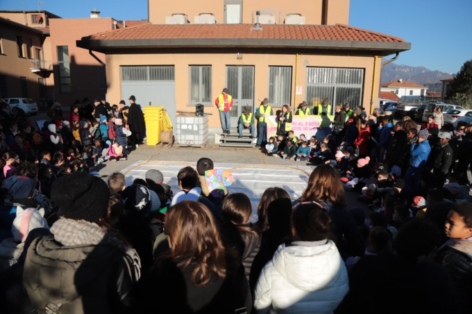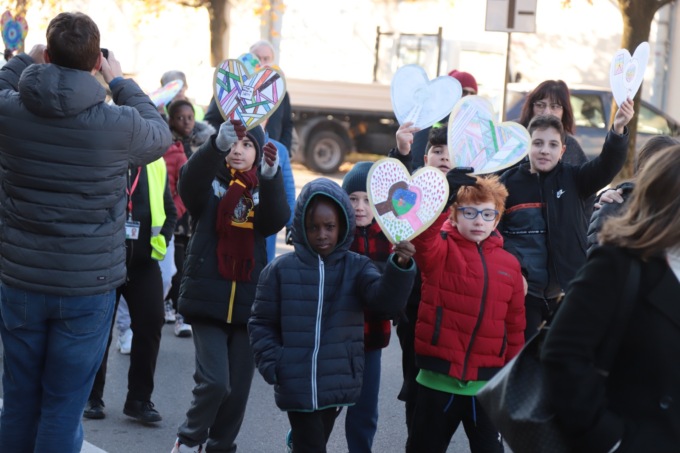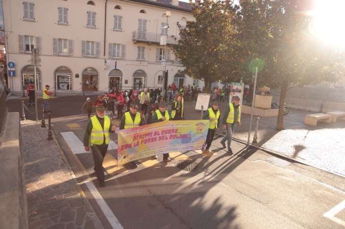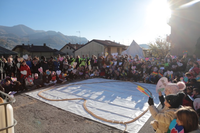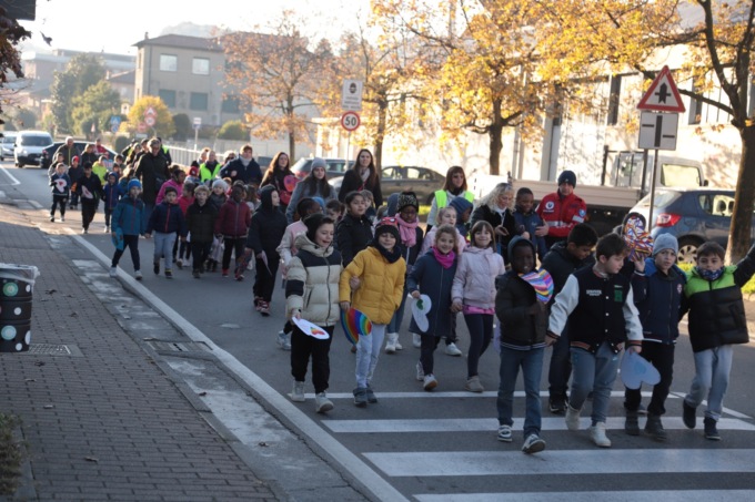 “Quest’anno – ha spiegato Silvia Cazzaniga per il Piedibus – abbiamo lavorato durante tutta la settimana su un tema in particolare e cioè sul diritto di tutti i bambini a poter esprimere le proprie possibilità e tutti i colori che ciascuno di loro porta dentro. Il legame tra il diritto ad esprimere le proprie potenzialità con le emozioni che ne affiorano lo si è voluto riassumere con lo slogan che ci ha accompagnato per tutta la settimana: “Diritti al cuore, con la forza del colore”. Dove il colore esprime le potenzialità di ciascuno che devono essere spronate a venir fuori, insieme alle emozioni che le accompagnano, per arrivare fino al cuore, all’essenza di ciascuno, alla sua unicità, con tutte le sue sfumature. ‘Liberare’ i propri colori, le proprie possibilità, ma anche cercarli per strada, nel mondo che ci circonda. Nessuno è solo, ogni colore influenza ed è influenzato da quello che gli sta vicino”.