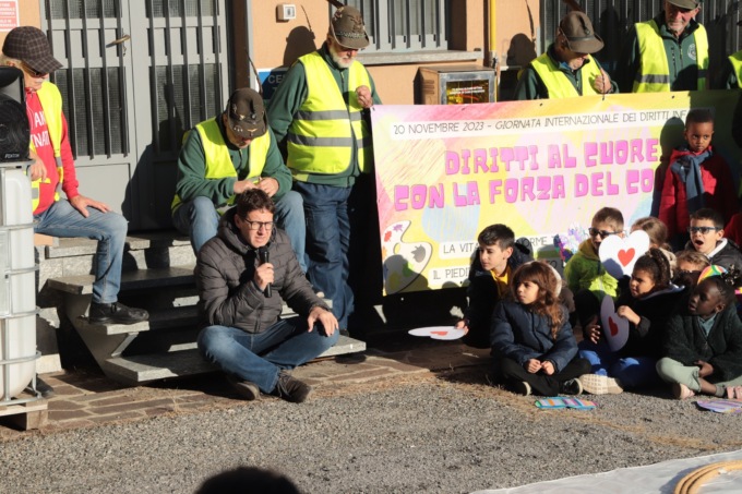 La parola è poi passata al sindaco Marco Passoni che, dopo essersi seduto in mezzo a tutti i bambini intervenuti, ha rivolto direttamente a loro un toccante discorso: “Questa è la settimana dei diritti di voi bambini. Voi che avete, tra gli altri, il diritto di essere rispettati. Il rispetto è la cosa più importante che tutti noi adulti e bambini dobbiamo ricordarci. Guardo voi, piccoli studenti, e vi dico che dovete avere rispetto per il vostro compagno di banco, che sia bianco, nero o giallo e di qualsiasi nazionalità sia. Dovete avere rispetto per l’altro sesso, maschi o femmine che siano, e dovete ricordarvelo perché poi quando si diventa grandi spesso ci si dimentica. Ognuno ha il diritto di esprimere le proprie potenzialità e noi adulti il dovere di rispettarle. Lo dico agli adulti e anche a me stesso: aiutiamo i nostri figli ad avere il rispetto. È difficile, pensiamo di farlo e magari inciampiamo, ma non dobbiamo mollare davanti a tutto quello che succede, oggi e tutti i giorni da qui in avanti”.