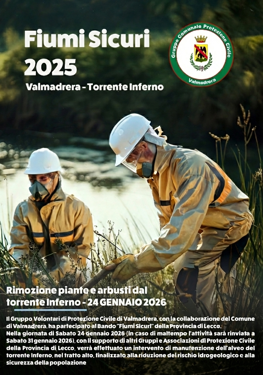 Una vera e propria giornata di mobilitazione per la sicurezza del territorio quella che vedrà protagonista il Gruppo Comunale di Protezione Civile di Valmadrera sabato 24 gennaio 2026. Circa 80 volontari, provenienti sia dal gruppo locale che da altre associazioni della Provincia di Lecco, si ritroveranno per un importante intervento di manutenzione nell’ambito del bando provinciale “Fiumi Sicuri 2025”.