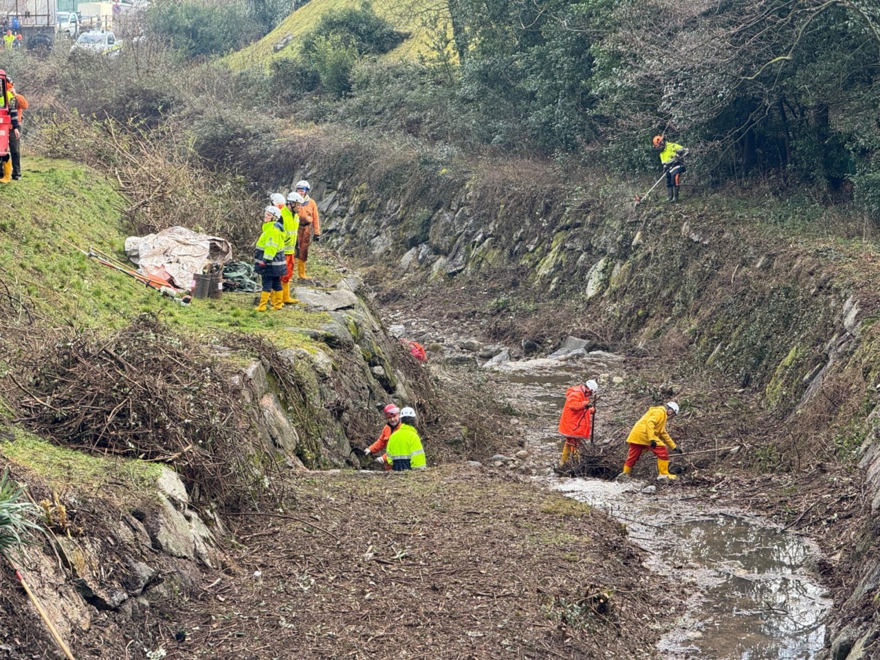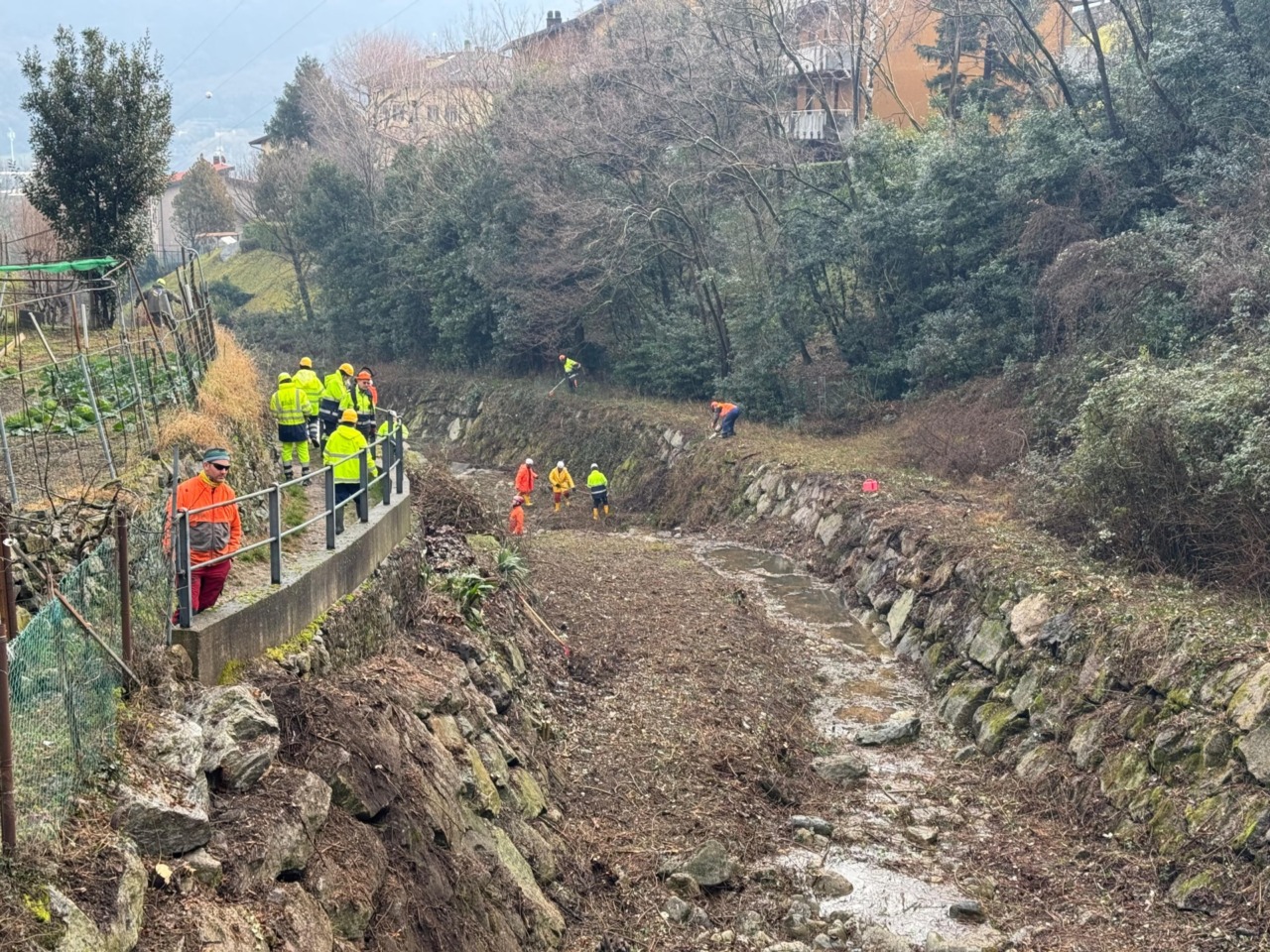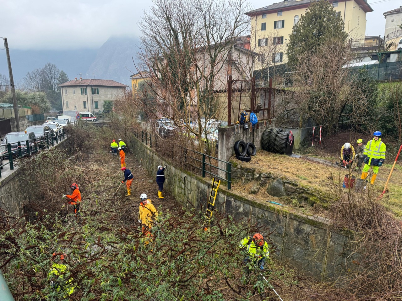 Le operazioni si sono concentrate sul tratto alto del torrente Inferno. L’attività, coordinata dal gruppo di Valmadrera con il supporto dei gruppi provinciali, ha previsto la rimozione di piante, arbusti e detriti dall’alveo.