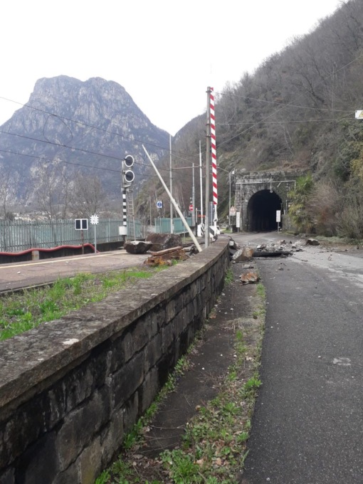 Frana in località Verceia: interrotta la linea ferroviaria tra Colico e Chiavenna