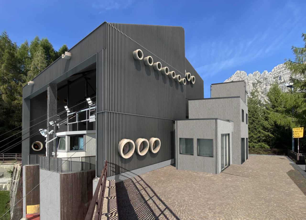 Particolarmente impegnativo, dal punto di vista realizzativo, il lavoro sulle parti in quota: “Gli interventi architettonici devono considerare la logistica e le modalità di esecuzione, che prevedono probabilmente lavori in acrobatica e grandi trasporti con elicottero sulle parti in montagna. Per questo motivo ci siamo orientati verso un’architettura basata su interventi a secco, con facciate prevalentemente metalliche e ventilate, sovrapposte alle facciate storiche esistenti. I mock-up mostrati qui rappresentano soluzioni prefabbricate per la facciata, pensate per creare vari giochi di ombre e riflessi in relazione al percorso solare, soprattutto sulle facciate laterali, molto alte”.