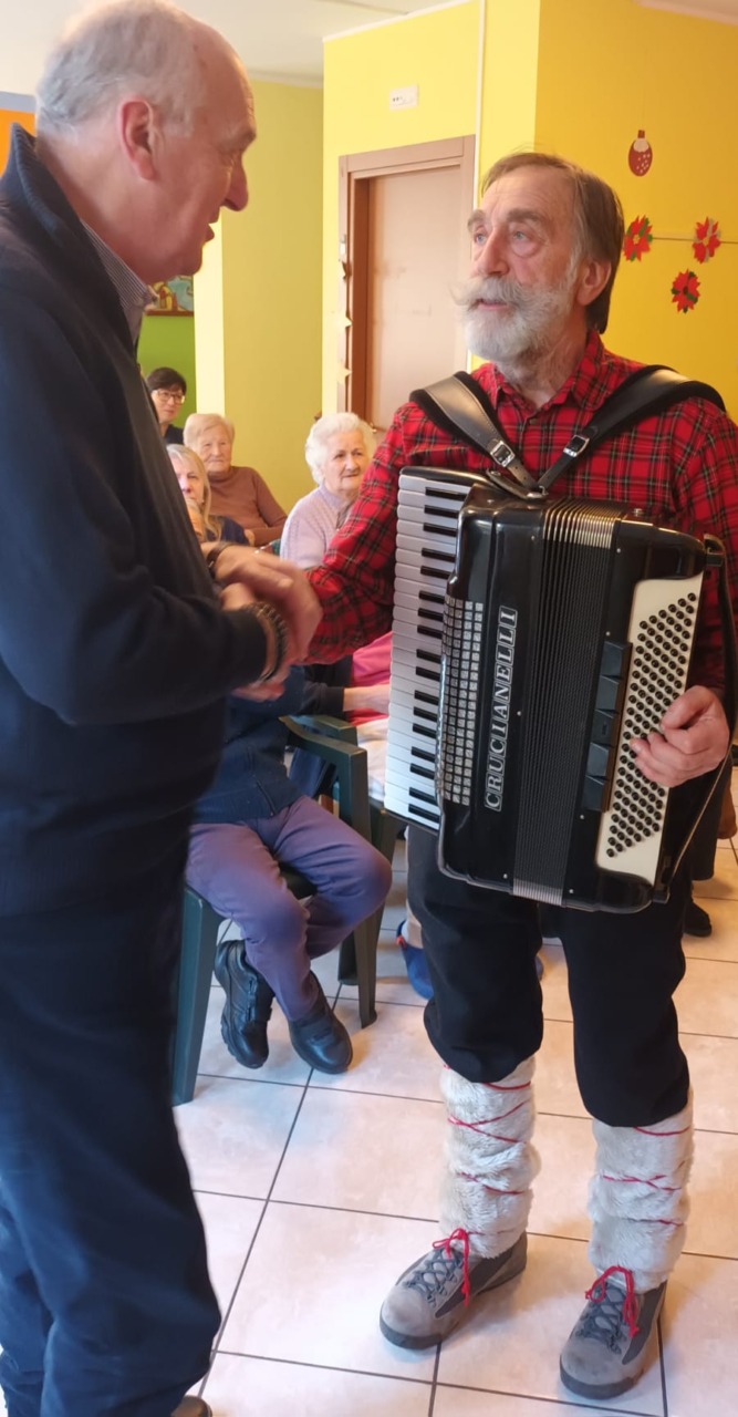 Annunciati dal suono inconfondibile della zampogna e della ciaramella, i musicisti hanno fatto il loro ingresso tra le note e i canti, creando immediatamente un’atmosfera natalizia calorosa e coinvolgente. La loro esibizione, arricchita da altri strumenti e dalle voci dei musicanti, ha regalato momenti di gioia, emozione e condivisione. La presenza attenta dell’educatrice Isa e la collaborazione del personale del centro hanno reso possibile un evento che ha valorizzato l’amicizia e la partecipazione di tutti.