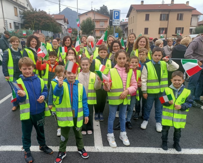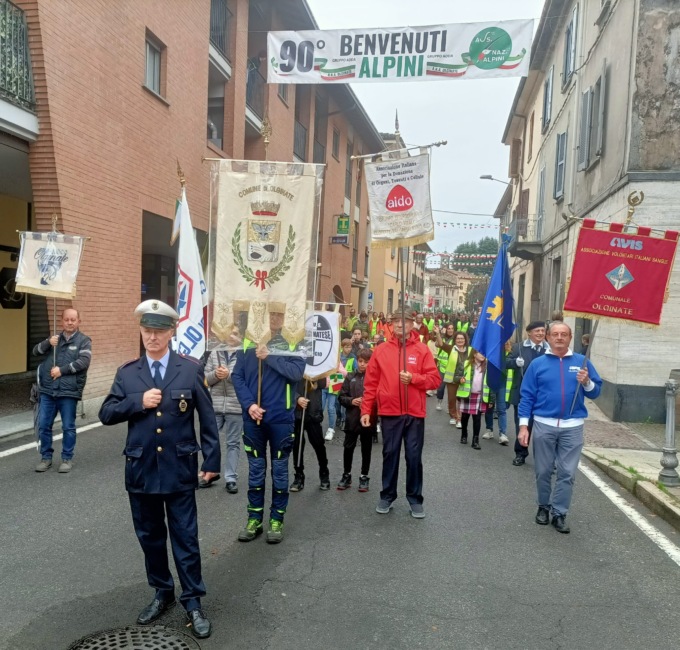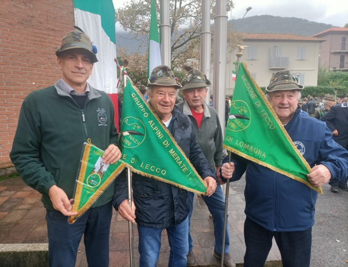 Tante bandiere tricolori esposte dalle finestre delle case e lungo le vie centrali del paese per il novantesimo anniversario di fondazione del gruppo Alpini Adda di Olginate, festeggiato oggi, domenica 27 ottobre 2024. Anche se la celebrazione era già iniziata ieri, sabato, nella chiesa prepositurale colma di persone che hanno assistito ai concerti di tre corali legate alle tradizioni degli alpini : il coro “Brianza ” di Missaglia, diretto dal maestro Fabio Triulzi, il coro ANA di Olginate diretto dal maestro Damiano Bonanomi, e il gruppo folkloristico dei Picett del Grenta diretti dal maestro Stefano Maggi. Durante la serata sono stati eseguiti magistralmente canti popolari legati alle Penne nere, brani religiosi e, dulcis in fundo, le tre corali, unite, hanno eseguito il “Silenzio”, fuori ordinanza, seguito da applausi scroscianti.