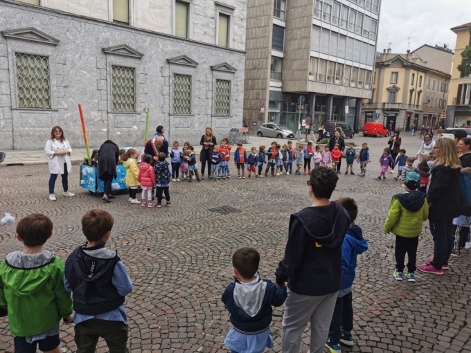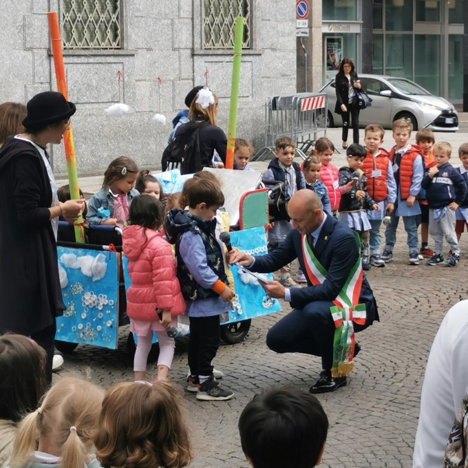 Lunedì 3 giugno 2024, in piazza Garibaldi i piccoli della Scuola dell’Infanzia Papa Giovanni XXIII hanno consegnato al Sindaco di Lecco, Mauro Gattinoni, “Una Rivista sulle Nuvole”, frutto della progettazione “Arti e Mestieri in città”.