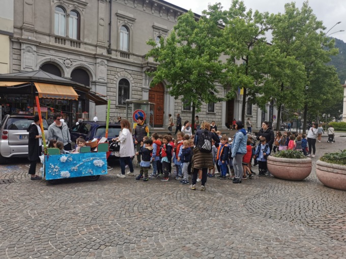 Piazza Garibaldi è stata solo la prima tappa di un lungo percorso. Fra bolle di sapone e con l’edicola ambulante, insieme a tutte le maestre, i piccoli si sono spostati lungo le vie del centro per consegnare a tutti la “Rivista Sulle Nuvole”! Un nome che riprende una citazione di Gianni Rodari: “Il mondo si può guardare ad altezza uomo, ma anche dall’alto di una nuvola. Nella realtà si può entrare dalla porta principale o infilarvisi da un finestrino”.