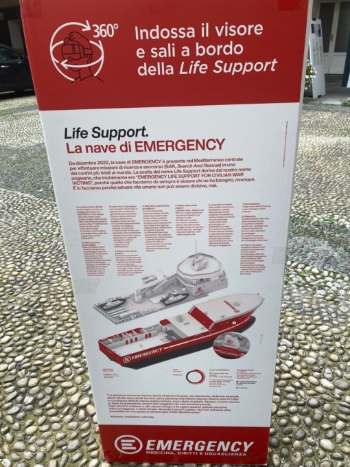 La mostra, allestita nel cortile del palazzo comunale di Lecco, narra il lavoro di Emergency nel Mediterraneo centrale, una delle rotte migratorie più pericolose al mondo. In particolare racconta la missione della nave Life support di Emergency che opera con un equipaggio di 29 persone tra marittimi, medici, mediatori e soccorritori che hanno portato in salvo 1629 persone.