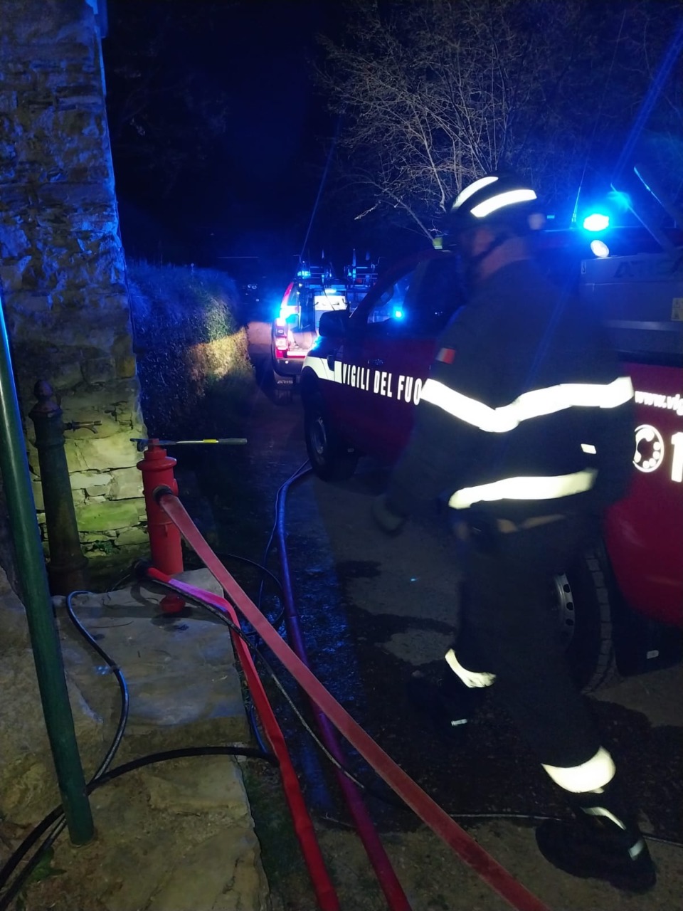 A causa della posizione della struttura, non raggiungibile dai mezzi pesanti, le squadre di soccorso hanno dovuto coordinare un attacco diversificato impiegando: 2 mezzi fuoristrada dotati di modulo antincendio (fondamentali per raggiungere il punto esatto del rogo); 2 autobotti e 1 APS (Autopompa Serbatoio) per il supporto idrico costante.