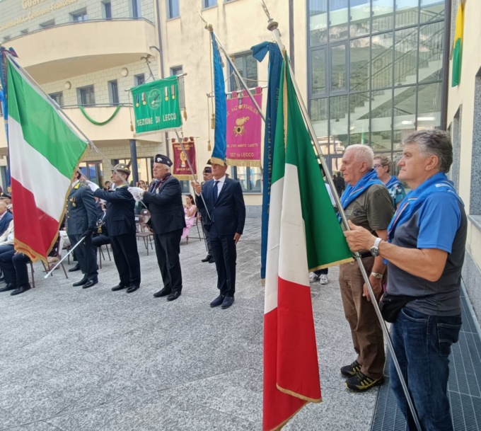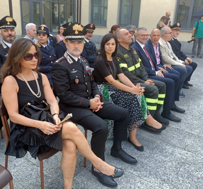 Numerose le autorità presenti, tra cui il sindaco Mauro Gattinoni, la presidente della Provincia Alessandra Hofmann, il prefetto Sergio Pomponio, il sindaco di Cernusco Lombardone Gennaro Toto, il presidente del Tribunale Marco Tremolada, il procuratore della Repubblica di Lecco Ezio Domenico Basso, il comandante provinciale dell’Arma dei Carabinieri colonnello Nicola Melidonis, il direttore provinciale dell’Agenzia delle entrate Stefano Valente, il comandante provinciale dei Vigili del fuoco Antonio Giulio Durante, il direttore del centro circondariale di Pescarenico Luisa Mattina, il questore Stefania Marrazzo, il prevosto di Lecco, don Bortolo Uberti, il segretario provinciale Usif Antonio Abbate, i consiglieri regionali Giacomo Zamperini, Mauro Piazza e Gian Mario Fragomeli.
