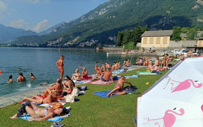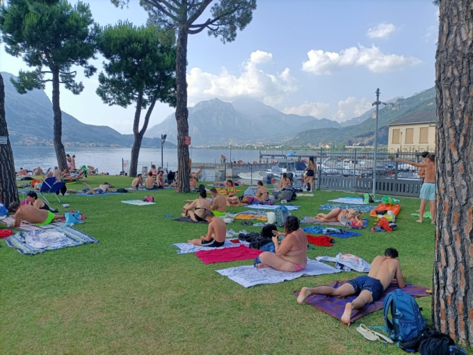 Lo è stato anche oggi, martedì 24 giugno 2025, con una temperatura percepita di oltre 34 gradi. Decine e decine di ragazzi, ma anche di adulti e anziani hanno letteralmente preso d’assalto il lungolago, chi all’ombra di qualche albero, altri stesi al sole, e alti ancora immersi nelle acque del lago. Tanti anche i gruppi di giovani che, dopo un giro in bicicletta hanno deciso di sostare per un piccolo break. La maggior parte delle persone però, si gode il sole per “un inizio di tintarella” che, come qualcuno ha commentato “dovrà essere poi completato al mare”.