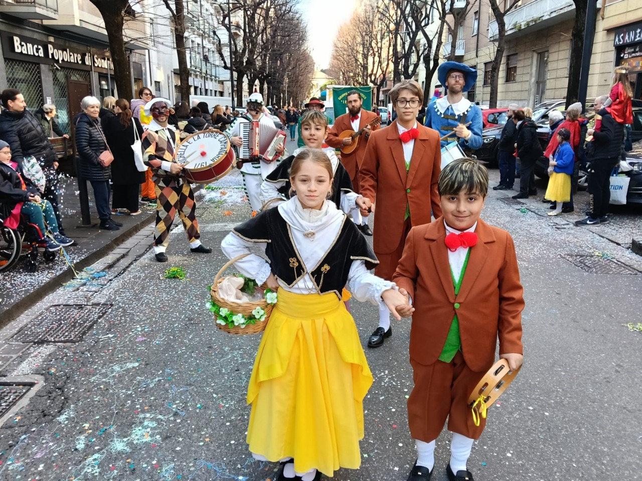 Giovedì grasso la festa si è trasferita in piazza XX Settembre – malgrado la giornata uggiosa e fredda – con letture per bambini a cura della Libreria Volante, uno spettacolo di burattini «Arlecchino e lo scherzo di Carnevale» a cura de Il Filoteatro e il burattinaio Marcello Ricci. Il pomeriggio si è concluso con una merenda per tutti i bambini offerta da Ltm. La giornata dei regnanti si è conclusa dopo la mezzanotte perché alle 20 si è tenuta una cena nell’oratorio dei cappuccini (il brasato con polenta era indimenticabile) alla quale hanno preso parte tantissime persone.