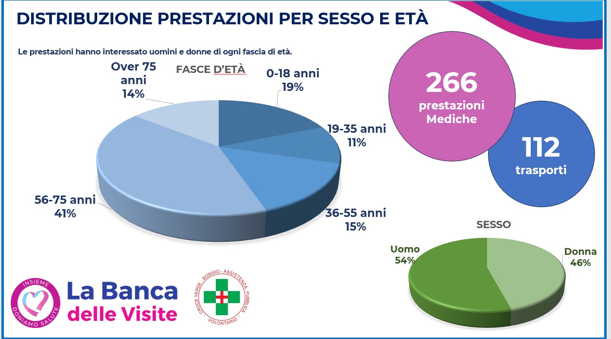 Grazie alla raccolta del 2024, Croce Verde, in partnership con Banca delle Visite, ha potuto donare 378 prestazioni di visite, esami e diagnostica specialistica ai cittadini fragili del territorio, oltre a un’attività di prevenzione con più di 100 elettrocardiogrammi gratuiti per la popolazione.