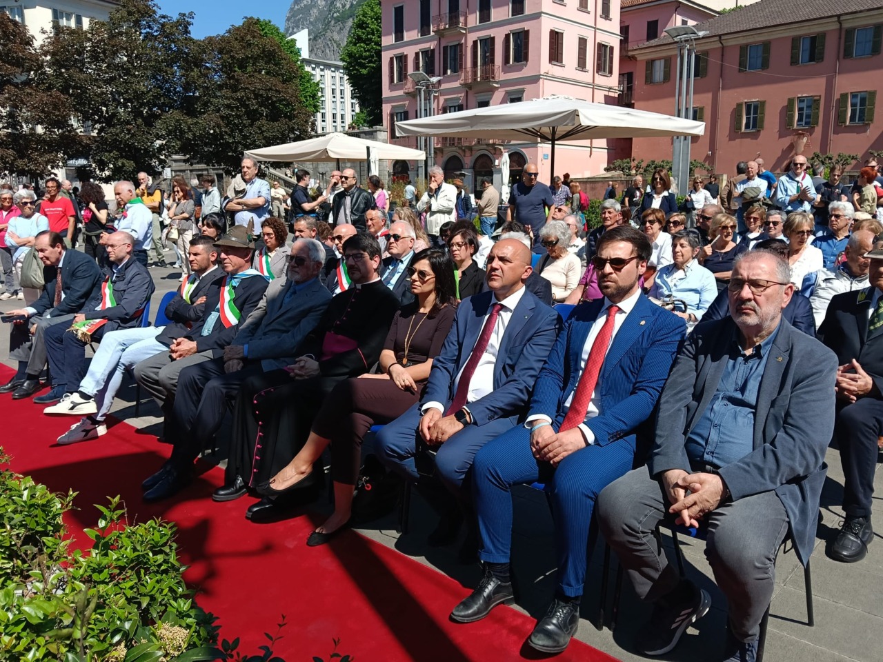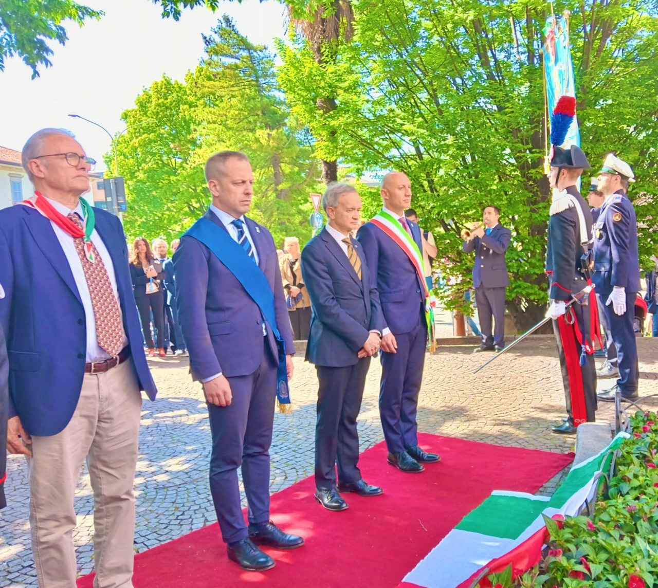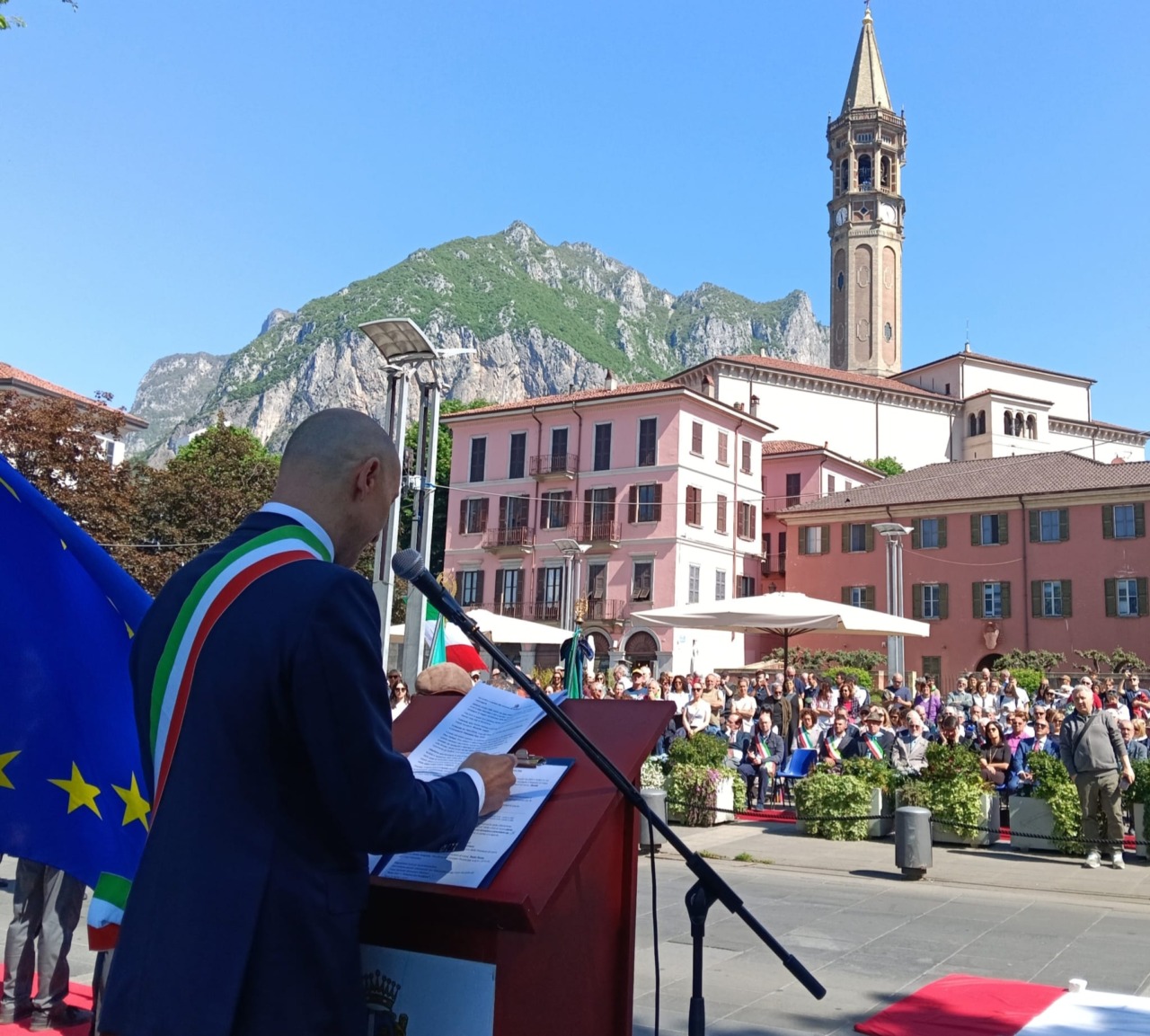 In piazza Cermenati, sono intervenuti le autorità e il presidente del Comitato provinciale dell’Anpi di Lecco Enrico Avagnina di Lecco, accompagnati dal Corpo musicale “Alessandro Manzoni”.