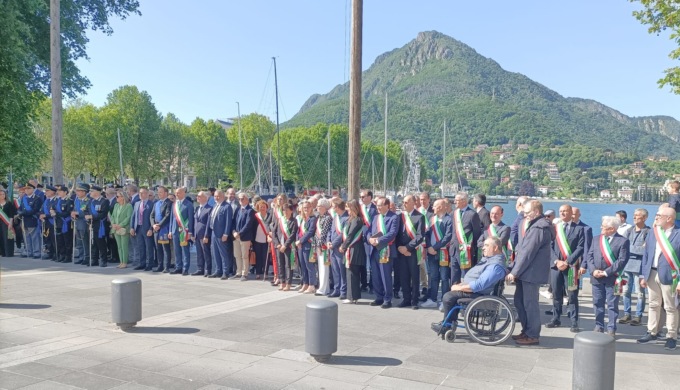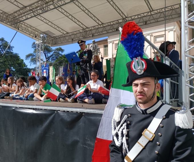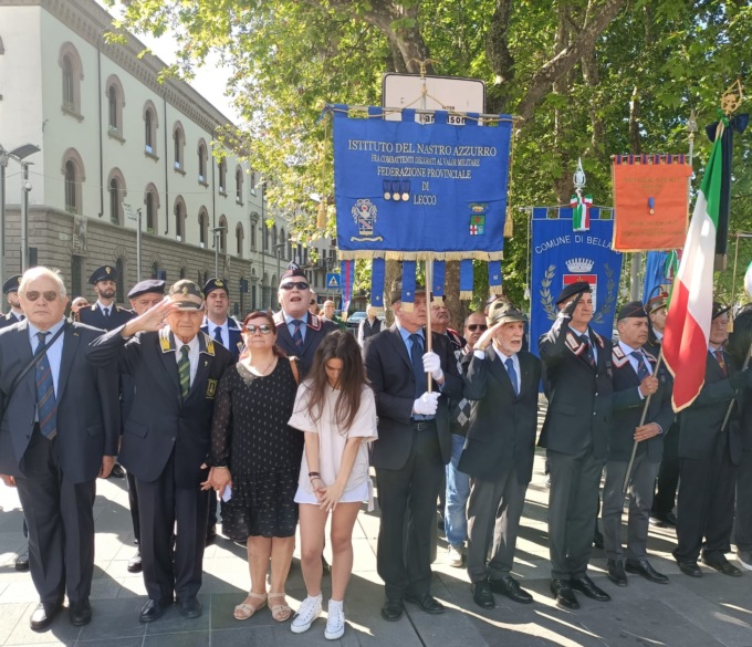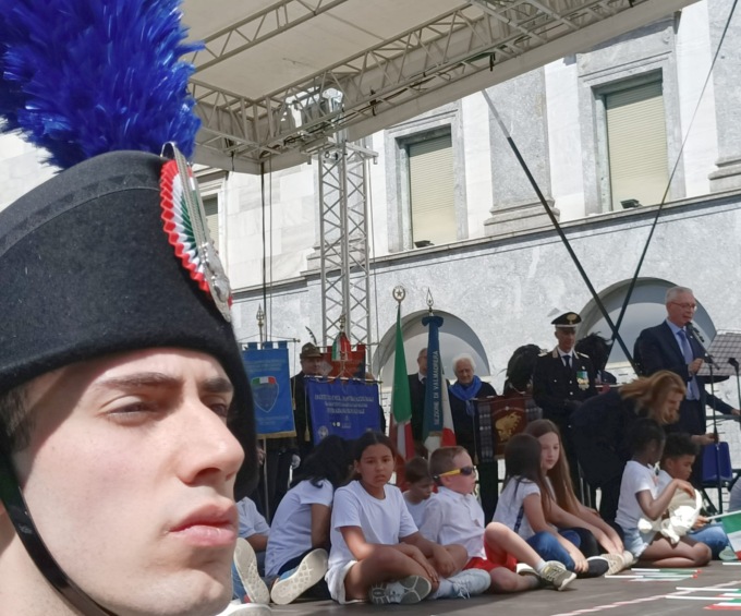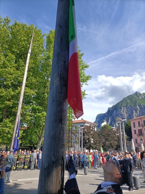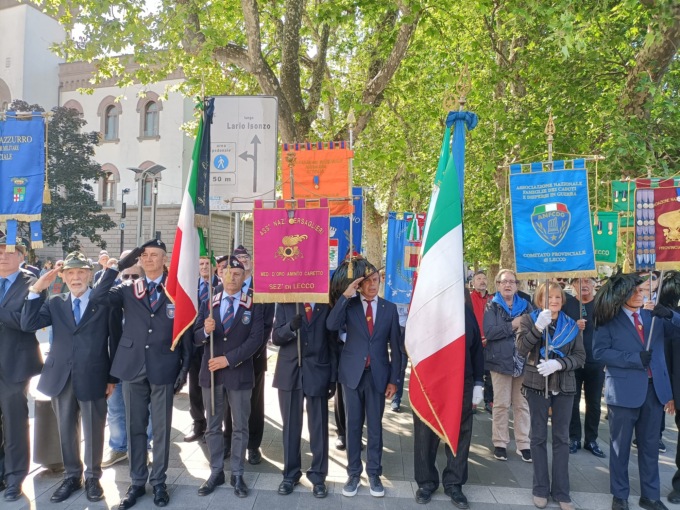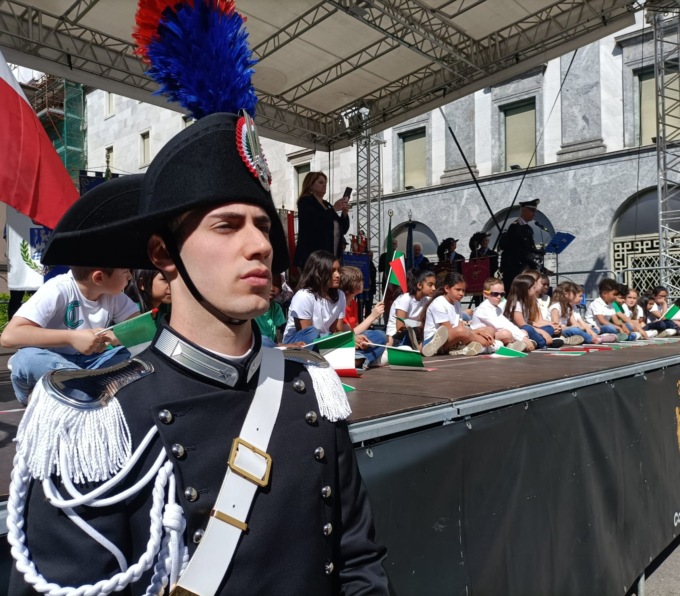 Presenti alla celebrazione anche i bambini della scuola primaria Edmondo De Amicis di Lecco, che hanno assistito a tutta la cerimonia sul palco di piazza Garibaldi. Infine, con le note della Fanfara dei Bersaglieri, diretta da Luca Losa, è terminata la cerimonia.