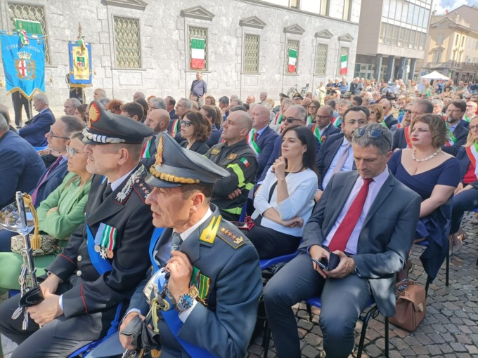“Carissimi, ricorre oggi il 78° anniversario della proclamazione della Repubblica Italiana, cui seguì il 1° gennaio 1948 l’entrata in vigore della Carta Costituzionale, conquista e baluardo di libertà e democrazia, affermazione e riconoscimento della dignità umana e dei diritti inviolabili della persona, dichiarazione di impegno, individuale e collettivo, per tutelarli e difenderli”, il discorso del prefetto Sergio Pomponio, che ha rivolto un saluto e un ringraziamento anche ai 13 sindaci del Lecchese giunti alla scadenza del mandato. “Il ruolo assegnato alle Autonomie, e ai Comuni in particolare – ha spiegato infatti il prefetto – non trova la sua giustificazione soltanto nella storia italiana, che aveva conosciuto nella civiltà comunale del basso Medioevo il momento di emersione della coscienza politica – sebbene non immune da logiche e da interessi corporativistici e talvolta oligarchici – e dell’affermazione delle comunità quali luoghi definiti di espressione della libertà individuale, purché coerente con i principi del Buon Governo. Ed infatti, in una consapevole attualizzazione dei fini, ben presente ai nostri padri costituenti, la spiegazione del posto nevralgico riservato ai Comuni risiede nel riconoscimento del potere più prossimo al dovere, del servizio più vicino al bisogno, della conoscenza più prossima all’esigenza, dell’amministrazione più consapevole del bene comune. L’idea nuova che si afferma nella Costituzione, allorquando essa riconosce il fondamento della democrazia dal “basso”, porta necessariamente a rivendicare nell’uomo un principio spirituale indipendente dalla società: l’individuo non sarà più l’uomo ideale e astratto al servizio di una società fortemente orientata all’imposizione, ma piuttosto queste donne e questi uomini qui e adesso, con tutte le loro fragilità, i loro limiti e le loro debolezze; ma anche con le loro risorse, capacità, intelligenza, coraggio, speranze, illusioni. Ovviamente non possono essere trascurati i rischi sottesi ad una tale impostazione, che non sono però rappresentati soltanto dal localismo e dal sopravvento del particolare sul generale e dell’interesse individuale sul bene collettivo”. Infine, il prefetto ha concluso: “In un mondo che pretende di ricostruirsi su basi nuove, le sentinelle della Repubblica, ossia i suoi cittadini, saranno capaci di ascoltare il cuore di ciascuno di loro e di ogni altra persona, se e soltanto nella misura in cui parteciperanno alla vita democratica ed agiranno al servizio del bene comune”.