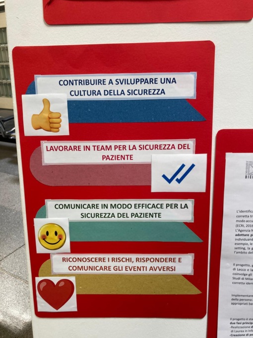 “Abbiamo deciso di utilizzare la tecnica della poesia visiva che nasce negli anni Sessanta ed è stata anche utilizzata nella corrente del futurismo  – ha detto la docente Lucia Rosa Olivadoti –  Attraverso l’accostamento di immagini e testi apparentemente apparentemente ingenui gli studenti hanno avuto la possibilità di realizzare elaborati  che si sono concentrai  si quattro marco tematiche  contribuire a sviluppare una cultura della sicurezza, lavorare in team per la sicurezza del paziente, comunicare in modo efficace per la sicurezza del paziente, riconoscere i rischi, rispondere e comunicare gli eventi avversi”.