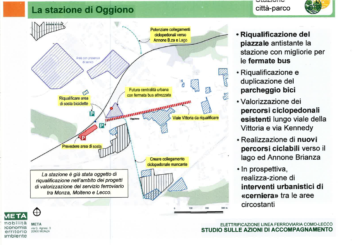 Oggiono: riqualificazione del piazzale antistante la stazione e delle fermate bus, ampliamento del parcheggio bici, valorizzazione dei percorsi ciclopedonali di viale della Vittoria e via Kennedy, con il completamento dei collegamenti verso il lago e Annone Brianza.
