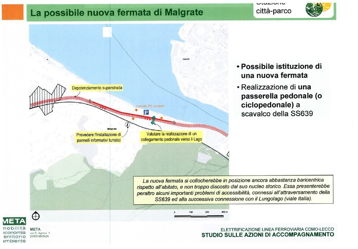 Malgrate: possibile istituzione di una nuova fermata ferroviaria, con la realizzazione di una passerella pedonale o ciclopedonale a scavalco della SS639, in posizione baricentrica rispetto all’abitato.
