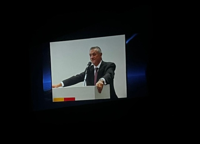 Un momento del video proiettato del discorso di Plinio Agostoni