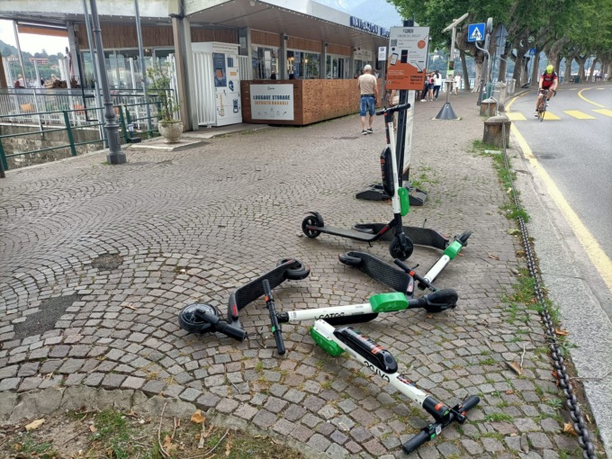 Non è certo un bello spettacolo quello che si è presentato agli occhi dei numerosi turisti che questa mattina affollavano la biglietteria all’Imbarcadero per acquistare i biglietti per il traghetto: diversi monopattini erano infatti sparsi sul lungolago, alcuni di essi sono stati letteralmente fatti a pezzi. Autori del gesto, come sempre, i “soliti ignoti”, che non contribuiscono certo a restituire una bella cartolina della nostra città, soprattutto in questo periodo, alle porte delle ferie estive.