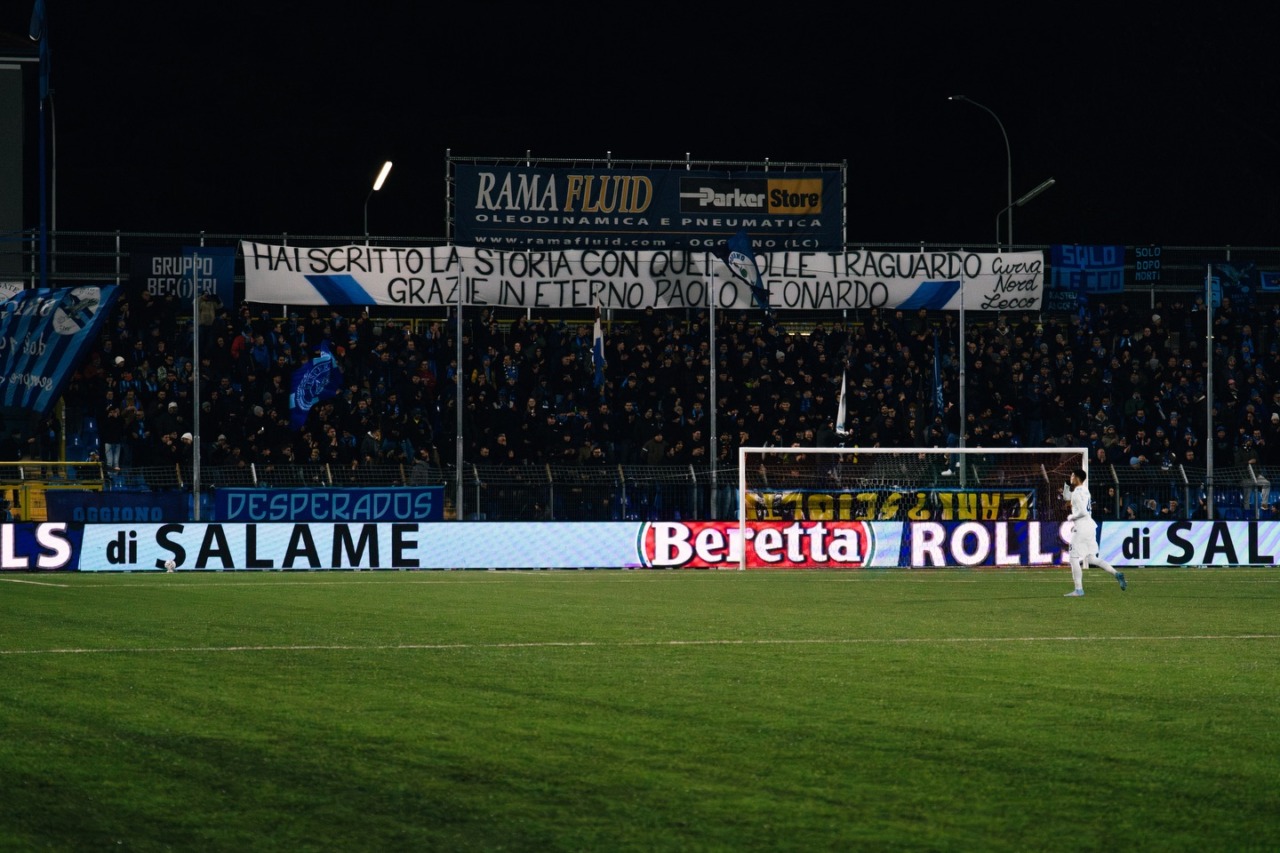 Contemporaneamente, al Rigamonti Ceppi (il Lecco era in campo contro l’Inter U23, squadra uscita vittoriosa da Lecco) Di Nunno è stato ricordato con un minuto di silenzio in campo e sugli spalti e con numerosi cartelli. Enorme lo striscione della Curva nord: “Gai scritto la storia con quel folle traguardo, grazie in eterno Polo Leonardo”.
