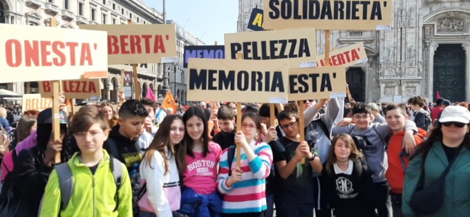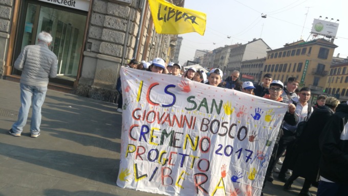 I ragazzi hanno raggiunto Milano “armati” di striscioni e cartelli realizzati in classe che riportavano parole chiave alla base della giornata: libertà, onestà, denunciare, memoria, solo per citarne alcune. Segno questo che la partecipazione alla grande manifestazione (circa 70mila le persone che vi hanno preso parte attraversando il centro di Milano, partendo da Porta Venezia a piazza Duomo, dove la testa del corteo, dietro il coloratissimo striscione con stampato lo slogan “E’ possibile”, è giunta poco prima delle 11) è stata il frutto di un percorso articolato e ragionato che i ragazzi hanno compiuto a scuola.