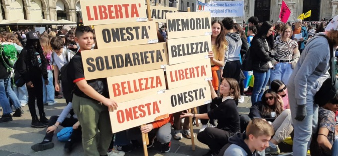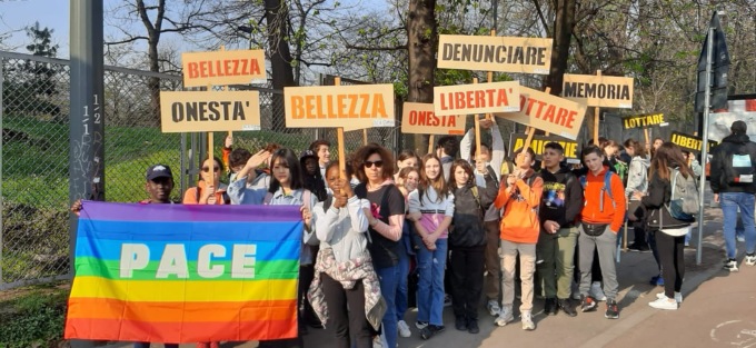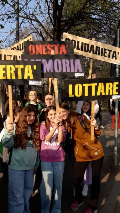 I ragazzi hanno raggiunto Milano "armati" di striscioni e cartelli realizzati in classe che riportavano parole chiave alla base della giornata: libertà, onestà, denunciare, memoria, solo per citarne alcune