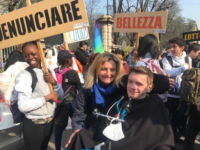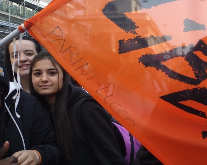 “Siamo arrivati a Milano in treno, e Trenord ha dato le fasce orarie per evitare riempimento. Per cui in combinazione, le classi degli Istituti Stoppani e del Parini sono partiti con lo stesso treno. Poi ci siamo ritrovati tutti al punto di ritrovo come da programma, che era ai Bastioni di Porta Venezia, da cui è partito il corteo”.