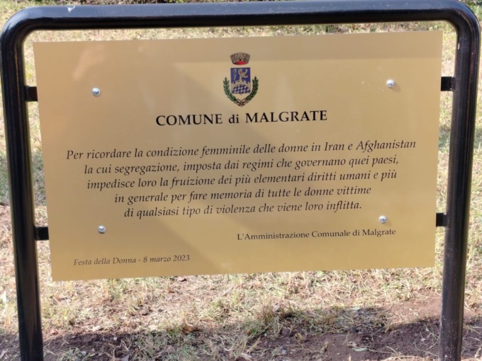 È stata inaugurata questa mattina, mercoledì 8 marzo 2023, la targa dedicata alle donne iraniane e afghane private di ogni libertà ma anche a tutte le vittime di violenza.