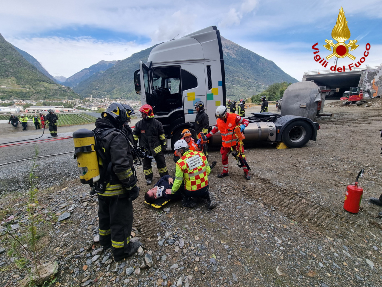 L’esercitazione ha coinvolto diverse unità operative e specialistiche del Corpo Nazionale dei Vigili del Fuoco, simulando scenari emergenziali realistici. Il primo scenario si è svolto a Tirano (SO), sulla variante della SS36, dove è stato simulato uno smottamento che ha coinvolto più veicoli, tra cui uno alimentato a GNL. In questa fase sono stati impiegati operatori con mezzi da movimento terra e squadre NBCR (Nucleare Biologico Chimico Radiologico) del comando di Sondrio, chiamati a mettere in sicurezza il veicolo ribaltato.