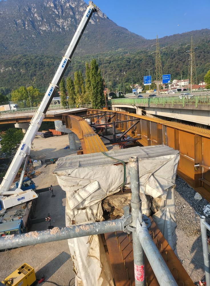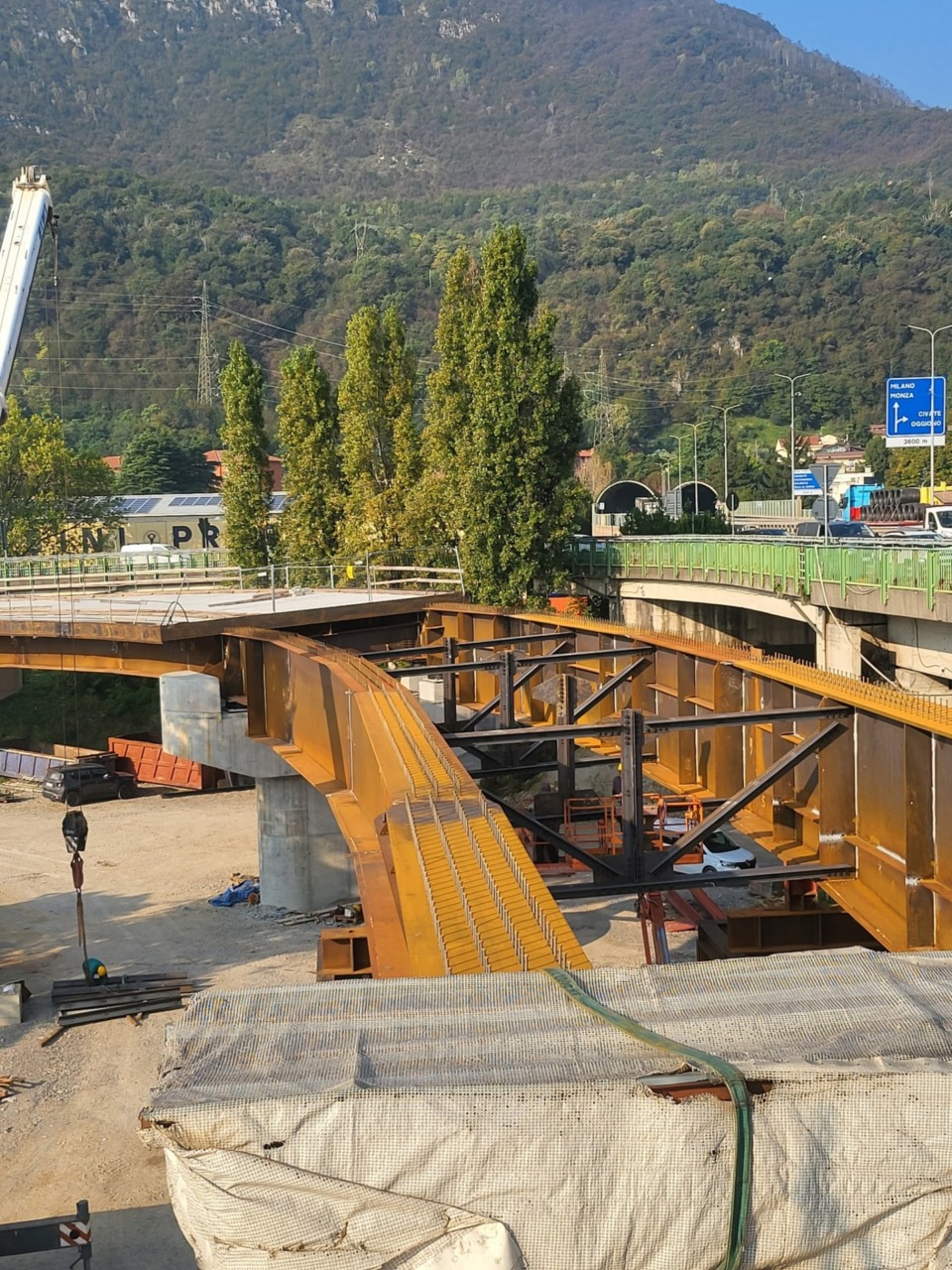 I passaggi successivi prevedono la gettata dell’ultimo tratto sul lato lecchese, la posa della soletta in calcestruzzo e infine la stesa dell’asfalto, completando così l’impalcato del nuovo ponte.