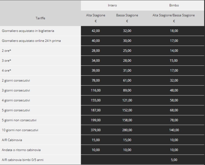L’aumento delle tariffe riguarda ad esempio anche i comprensori della Valtellina (clicca qui per le date di apertura delle piste a Bormio, Livigno, Madesimo, Aprica, Cima Piazzi e San Colombano, Valgerola, Teglio), come ad esempio Aprica.