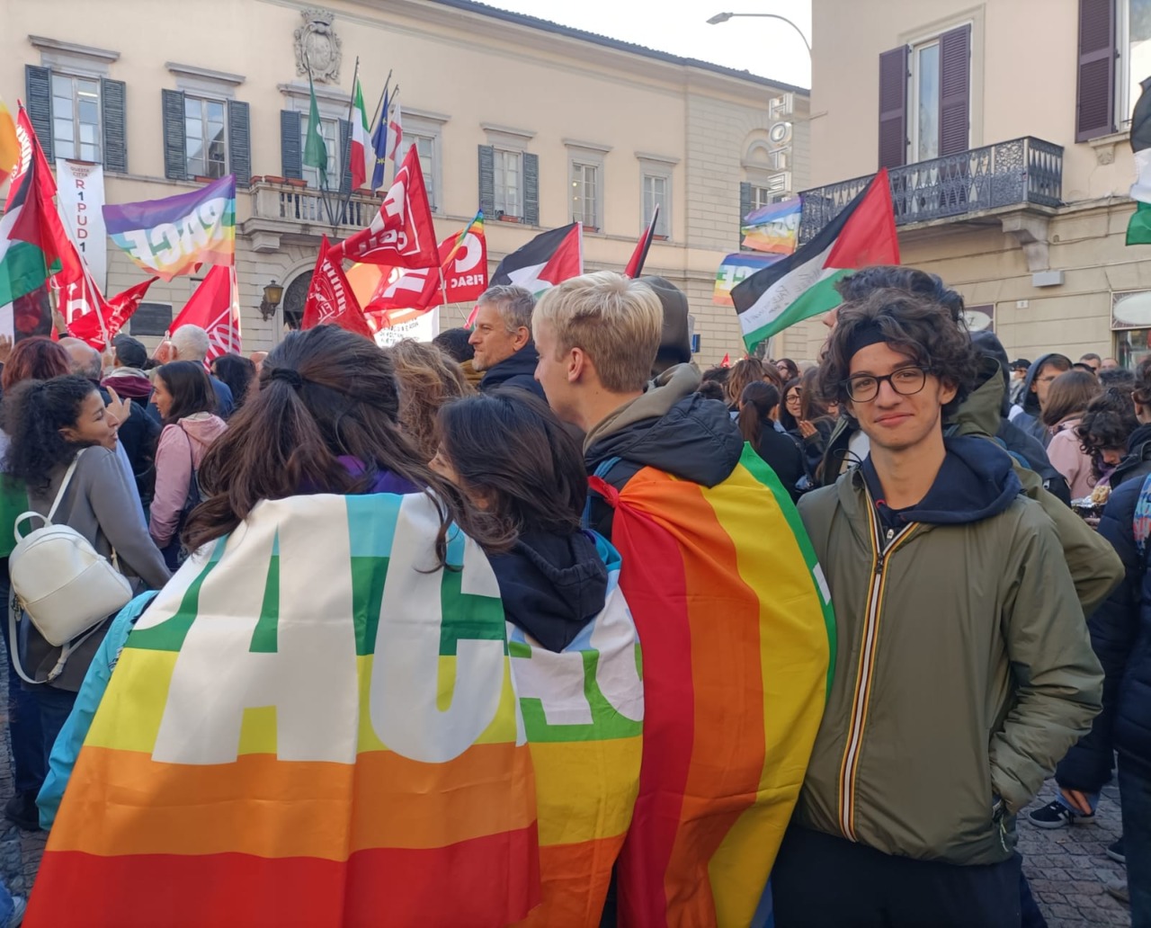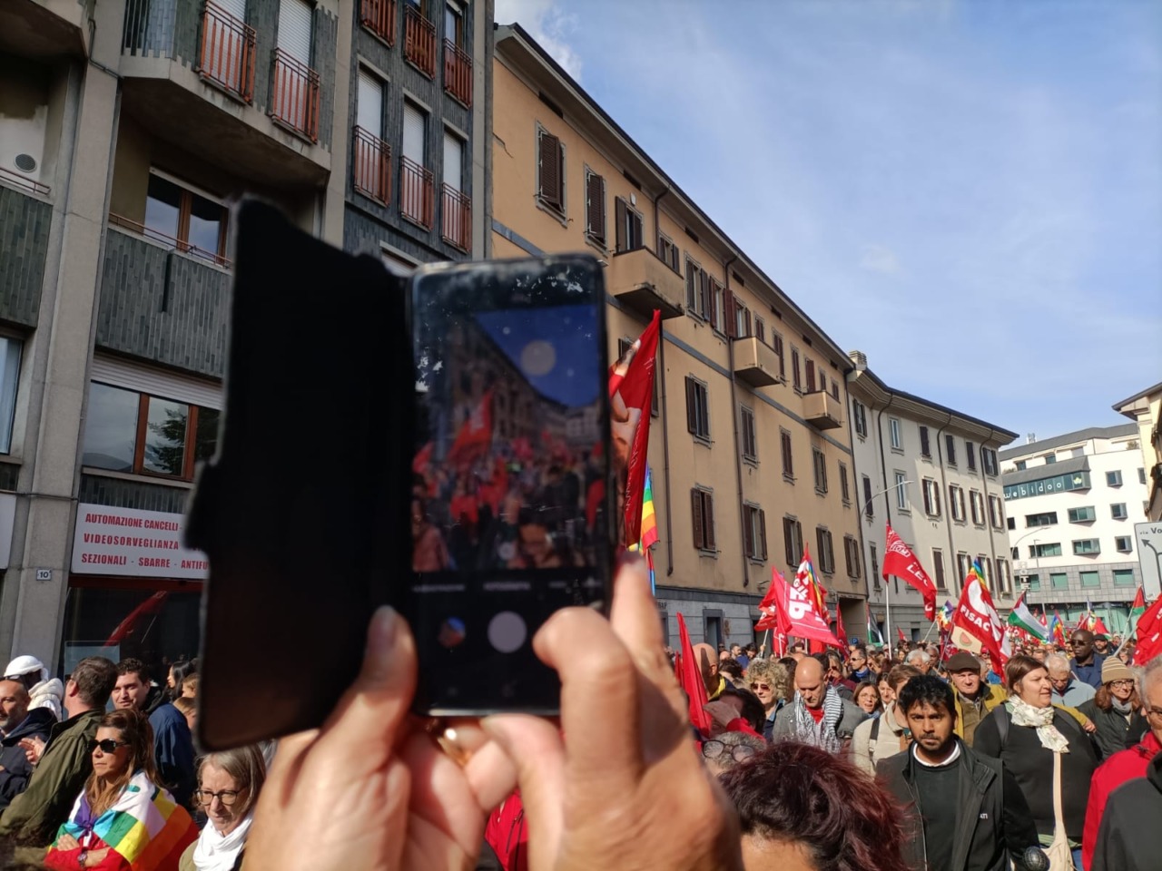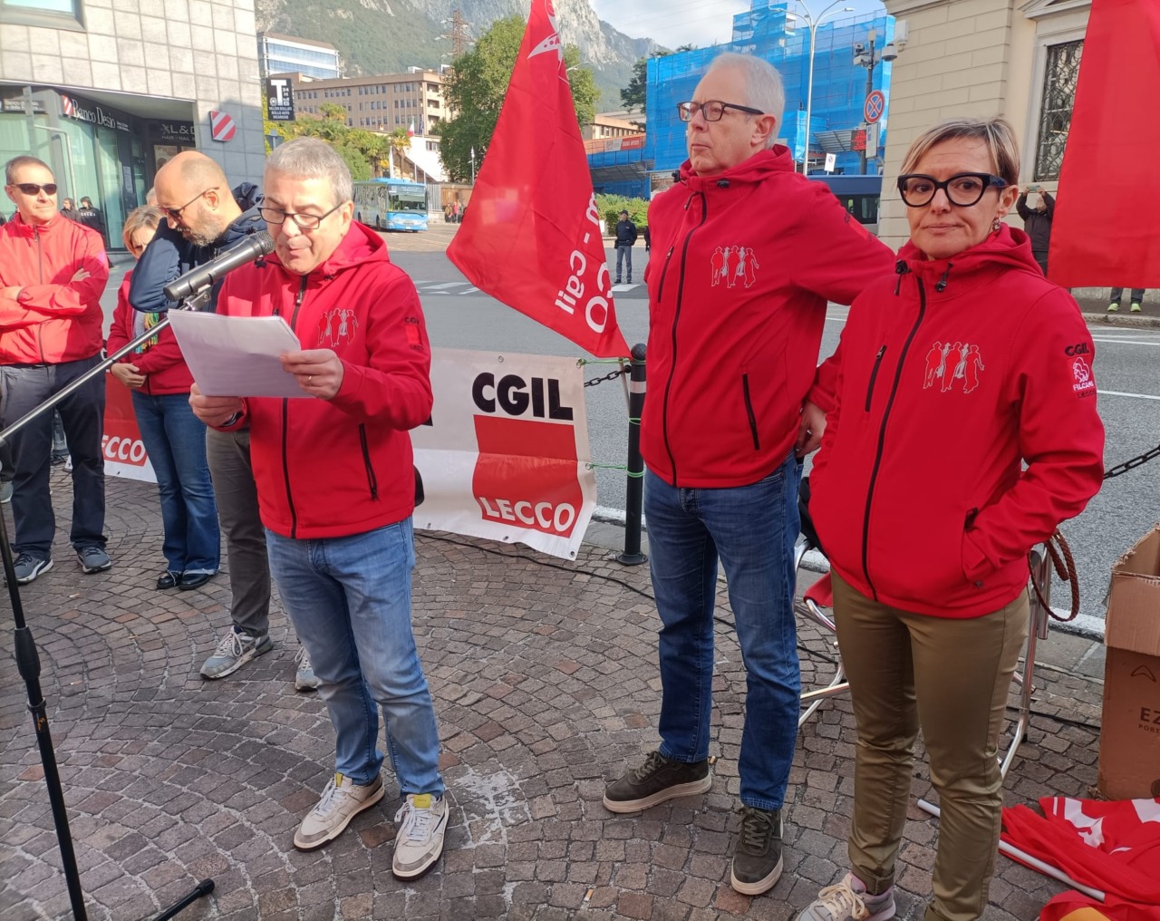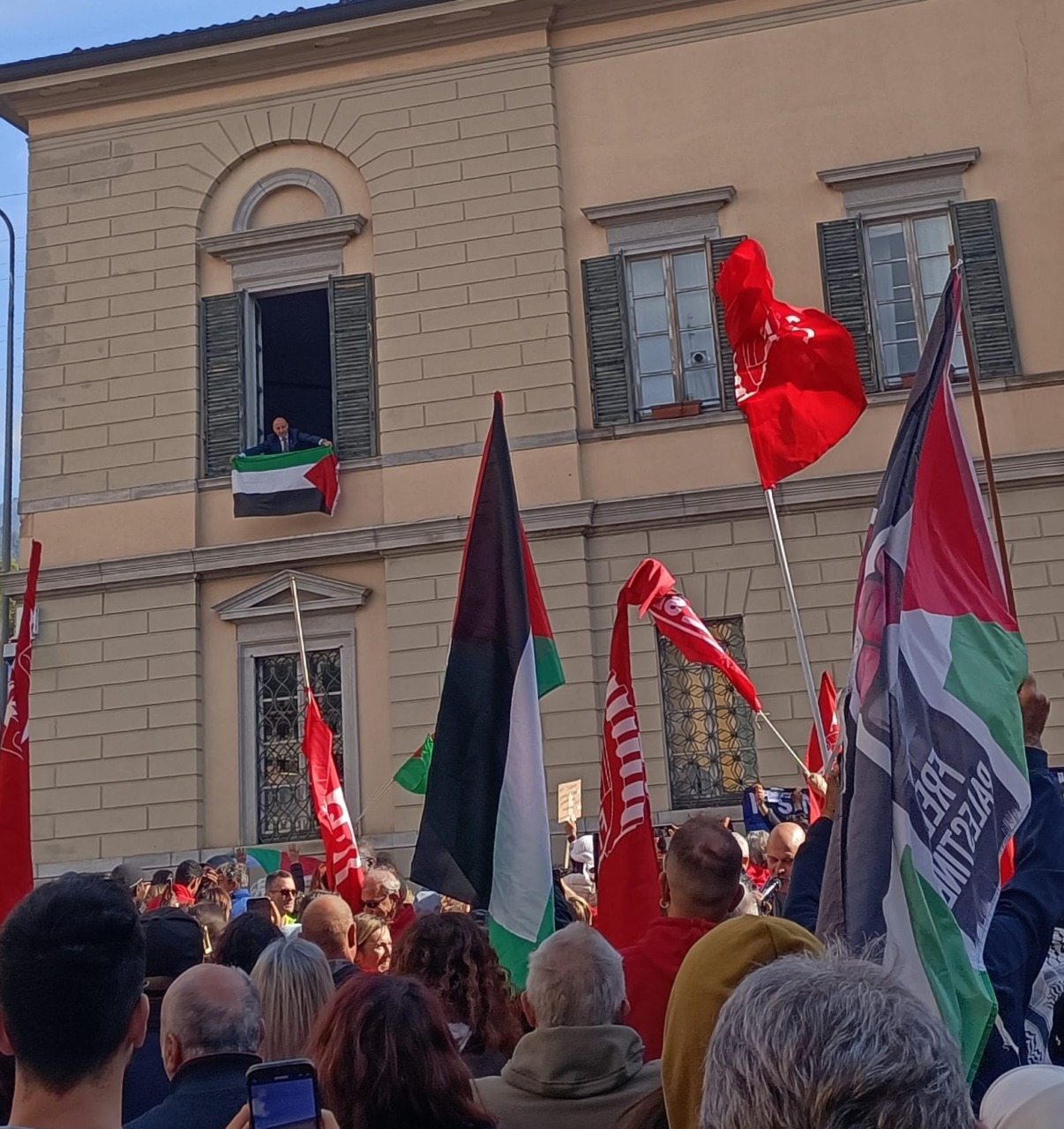 Al microfono si sono alternate testimonianze di lavoratori del settore pubblico e privato, studenti, pensionati, e sindacalisti coi loro appelli e inviti, mentre in piazza sventolavano bandiere della pace, delle sigle sindacali e della Palestina. Anche il sindaco di Lecco, Mauro Gattinoni, si è affacciato da Palazzo Bovara, stringendo tra le mani ed esponendo il vessillo palestinese.