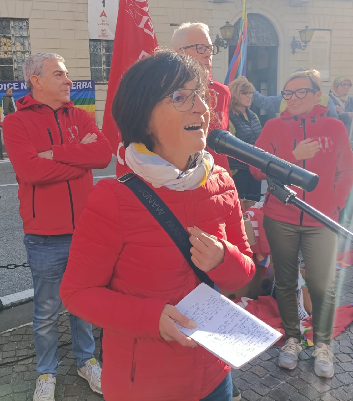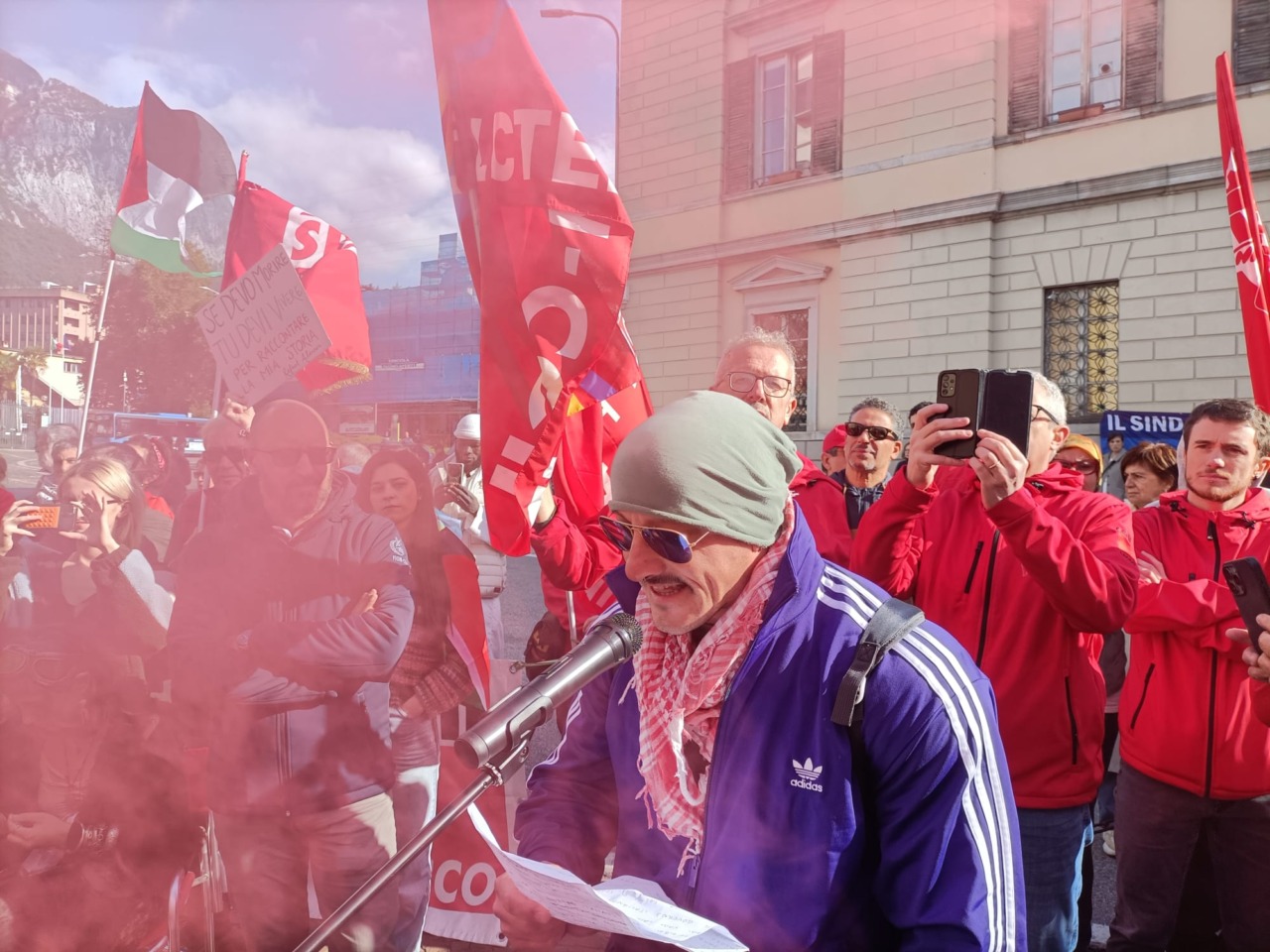 Vibrante il discorso di Diego Riva, segretario generale della Camera del Lavoro Lecchese. “Questa piazza, piena di lavoratrici e lavoratori, pensionate e pensionati, studenti, cittadine e cittadini, è un segnale importante: oggi il Paese si è fermato per scegliere da che parte stare. Siamo qui perché non vogliamo essere complici del silenzio. Siamo qui perché non accettiamo che la normalità diventi orrore. Siamo qui perché crediamo che giustizia e umanità vengano prima di qualsiasi calcolo politico o interesse economico. Oggi lo sciopero generale che stiamo vivendo non è uno sciopero come gli altri. Non riguarda soltanto le condizioni di lavoro, i salari o i diritti, che sono essenziali, ma qualcosa di più profondo: la difesa dell’umanità, del diritto internazionale, della pace”.